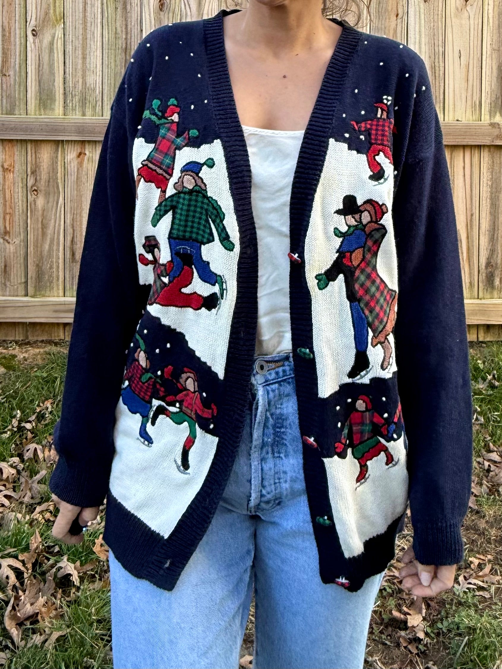1992 Susan Bristol Embroidered Cardigan Holiday Ice Skating