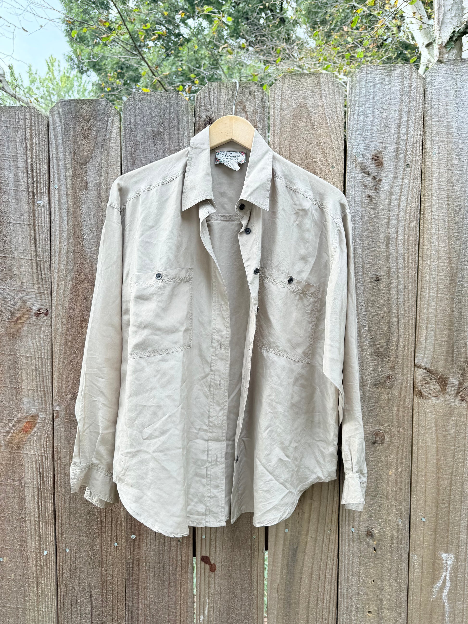 90s True Vintage Silk Button Down – Taupe Minimalist