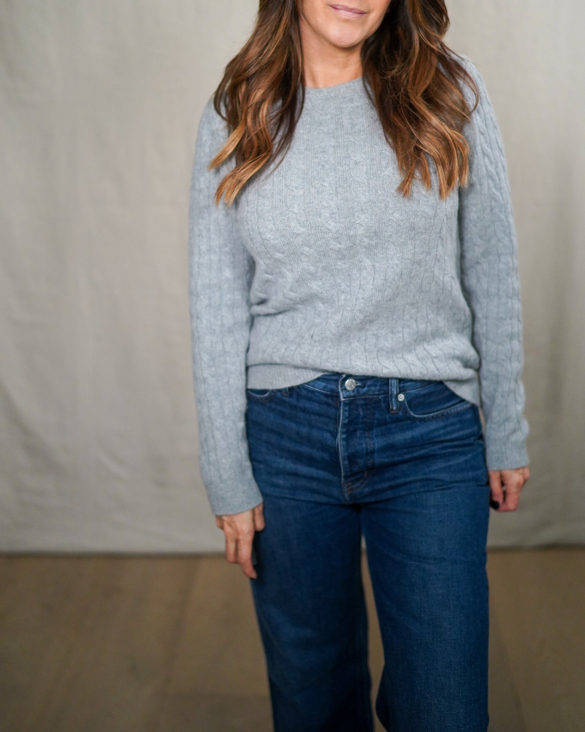 This is the kind of sweater that reads studied, not styled — refined cable knit, soft structure, and that unmistakable Italian cashmere hand that wears close without feeling precious.