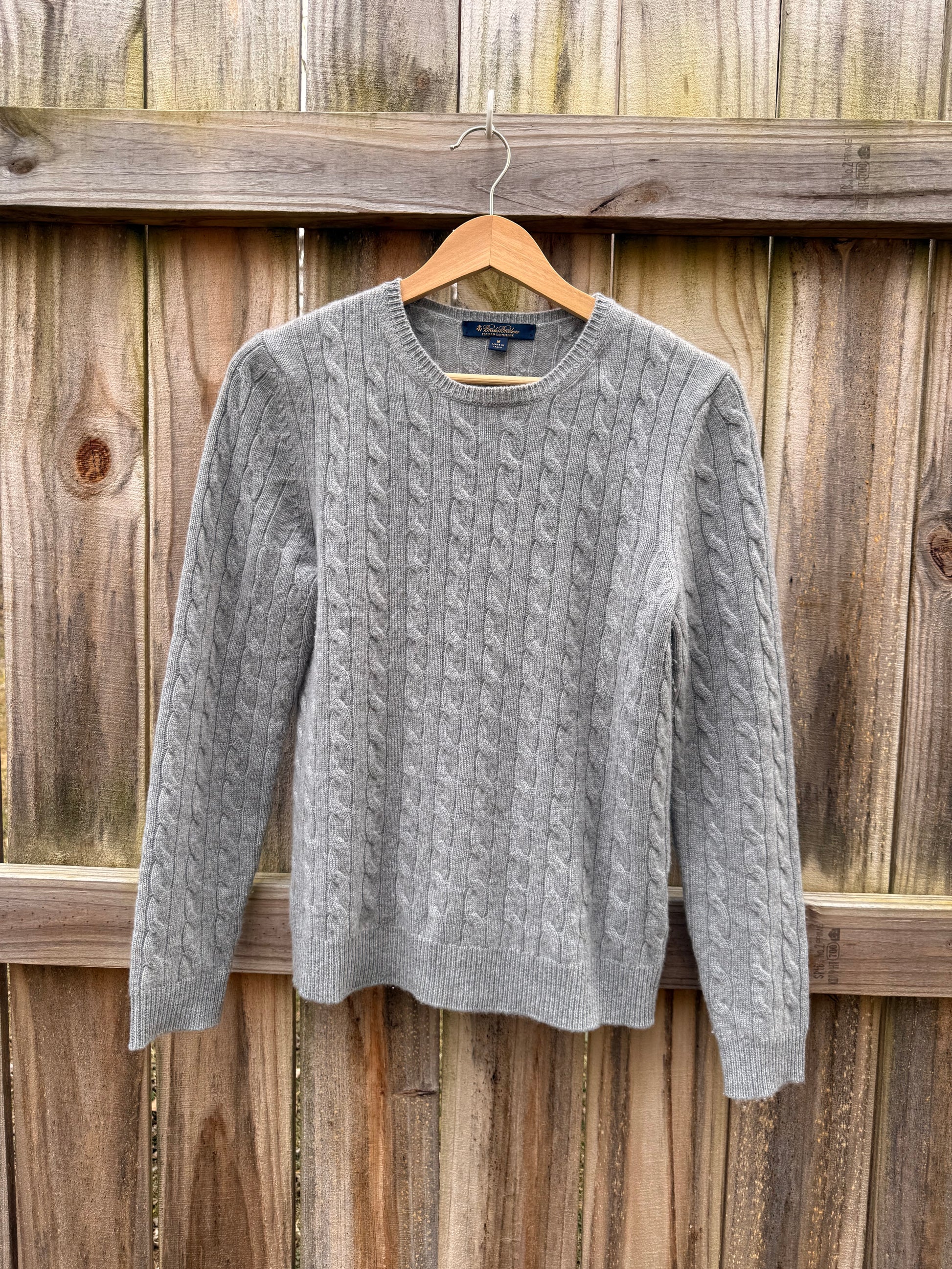 Brooks Brothers Italian Cashmere Cable Knit Sweater – Gray