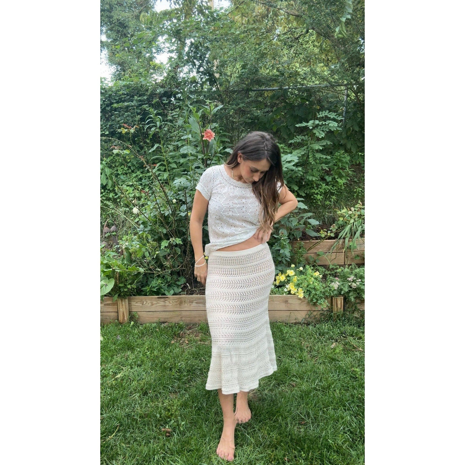 * Details: Eyelet embroidery, lace trim neckline and hem, short sleeves, semi-sheer airy weight