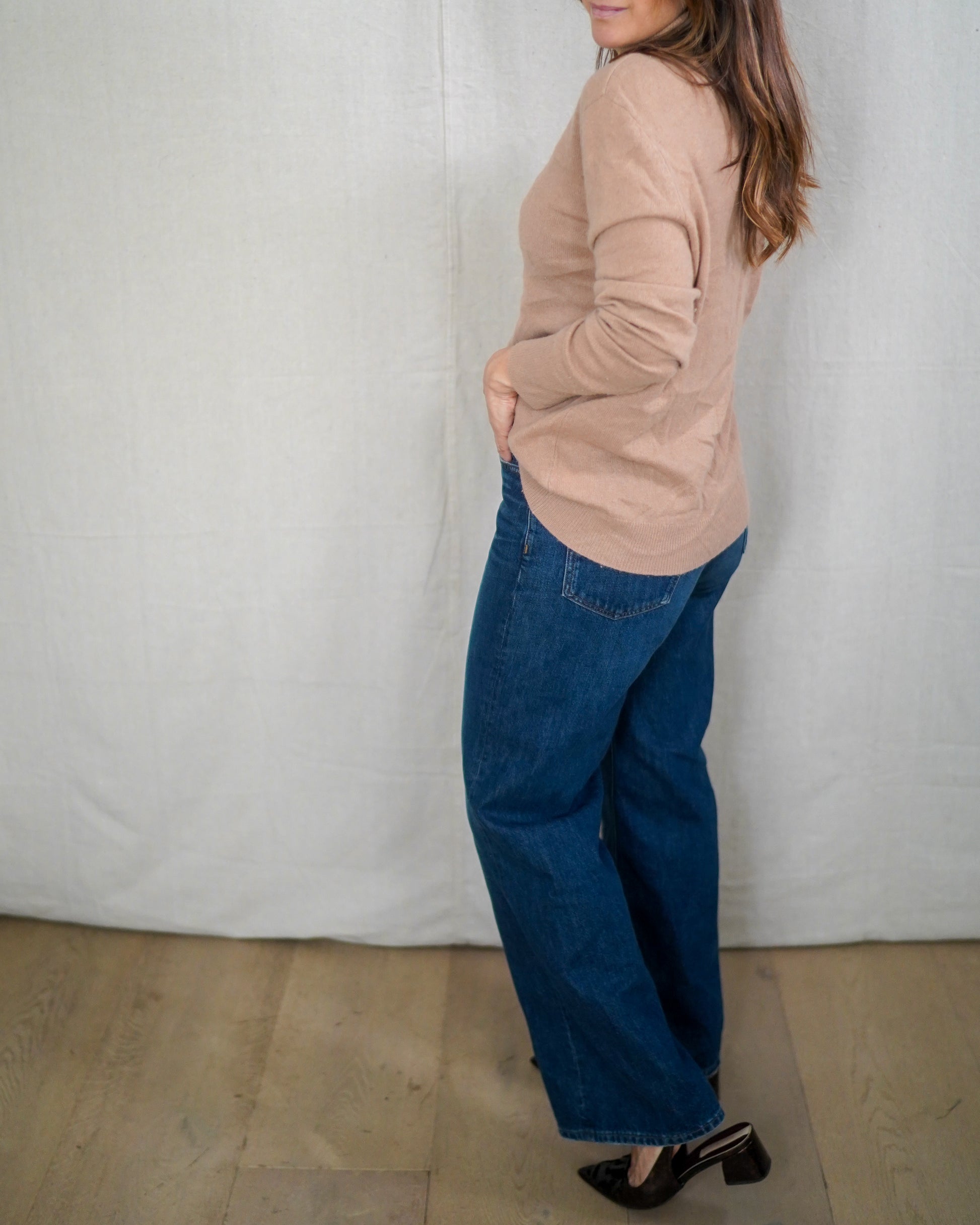 Quiet luxury in its purest form. Buttery-soft camel cashmere with that effortless Equipment drape that sits perfectly under coats, blazers, and scarves. This is the kind of knit that anchors an entire winter wardrobe without trying to be the moment.