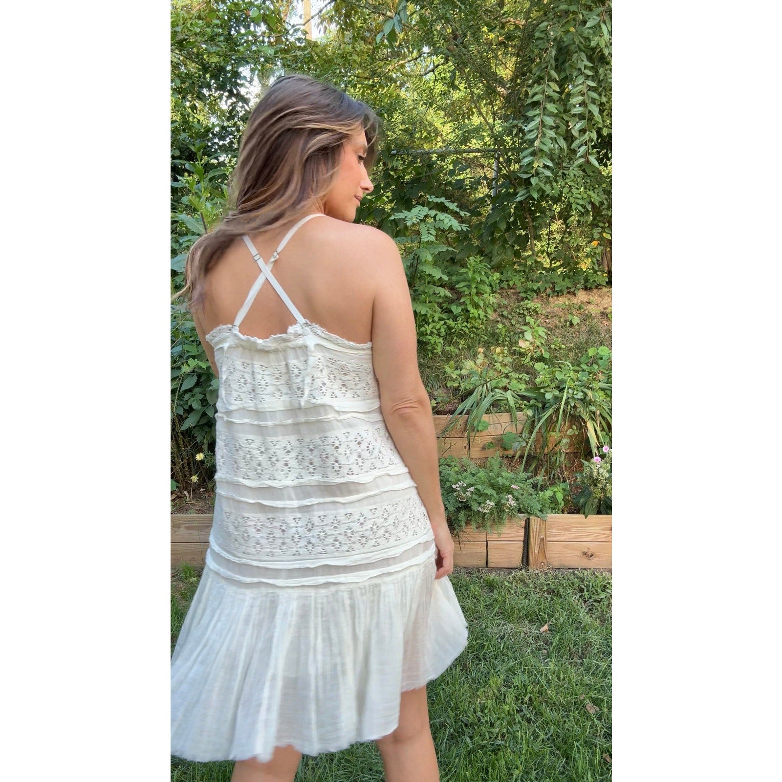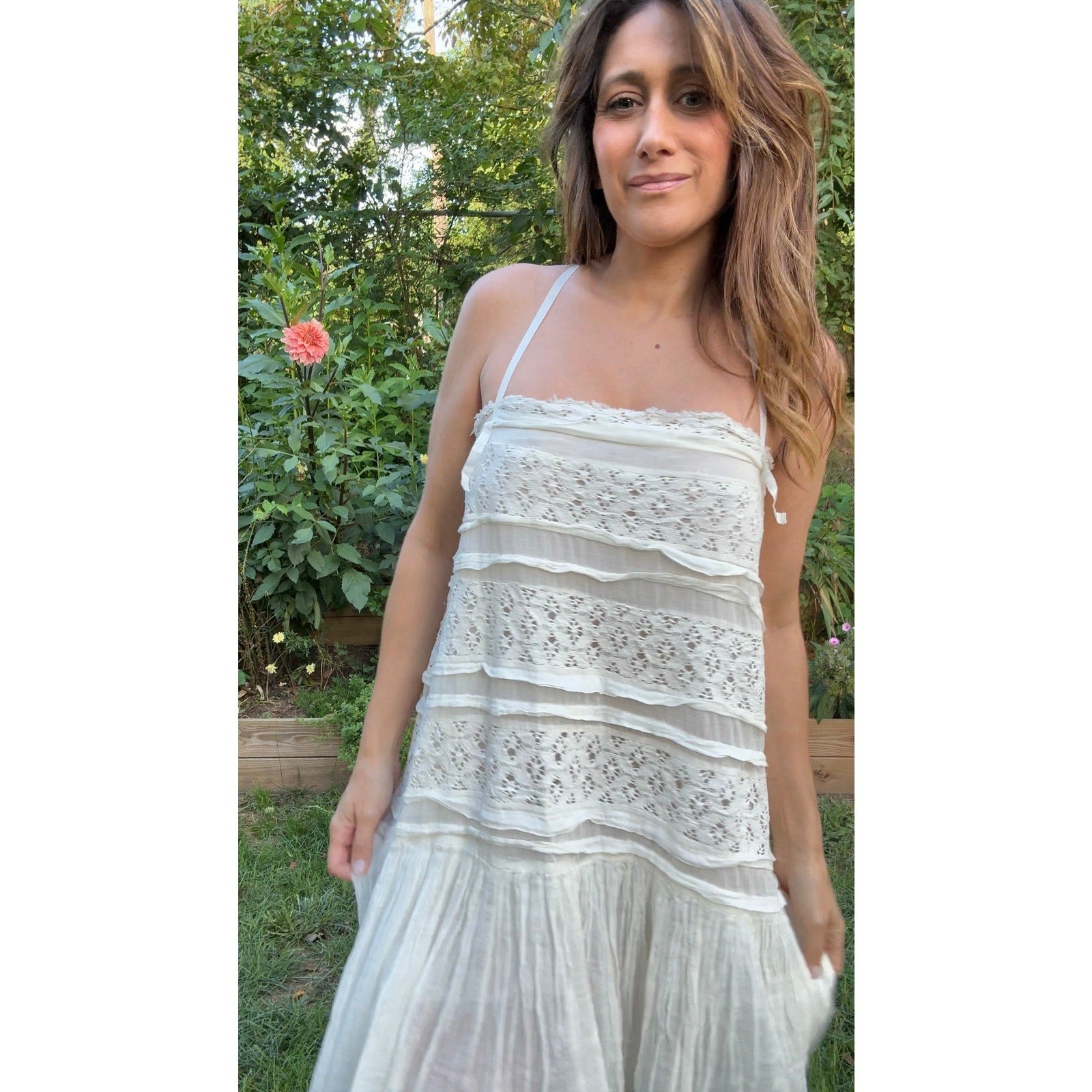 Boho done right. This vintage-coded Free People mini layers lace with airy cotton and a low-slung tiered skirt for that effortless, undone silhouette. It’s the kind of piece that feels straight out of Chloé’s 70s playbook, revived in the way modern prairie brands like Doên keep chasing.