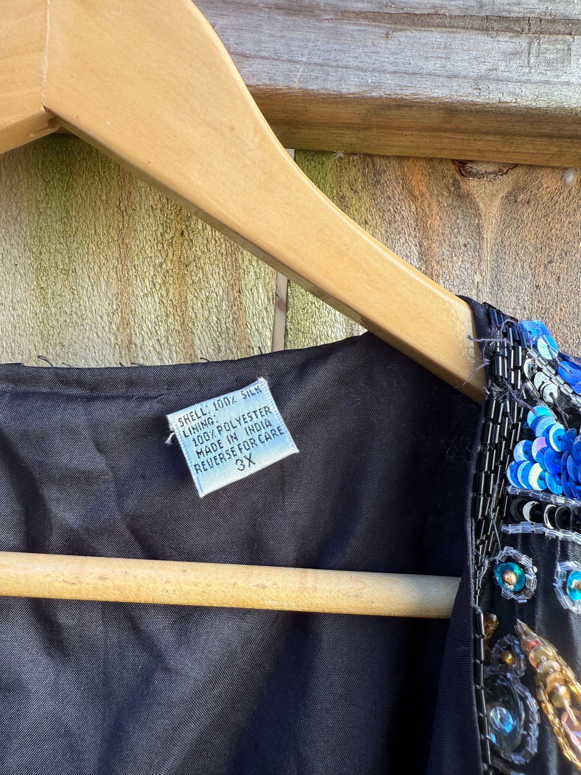 - Fabric: 100% silk shell, fully lined, dense hand-beaded embellishment