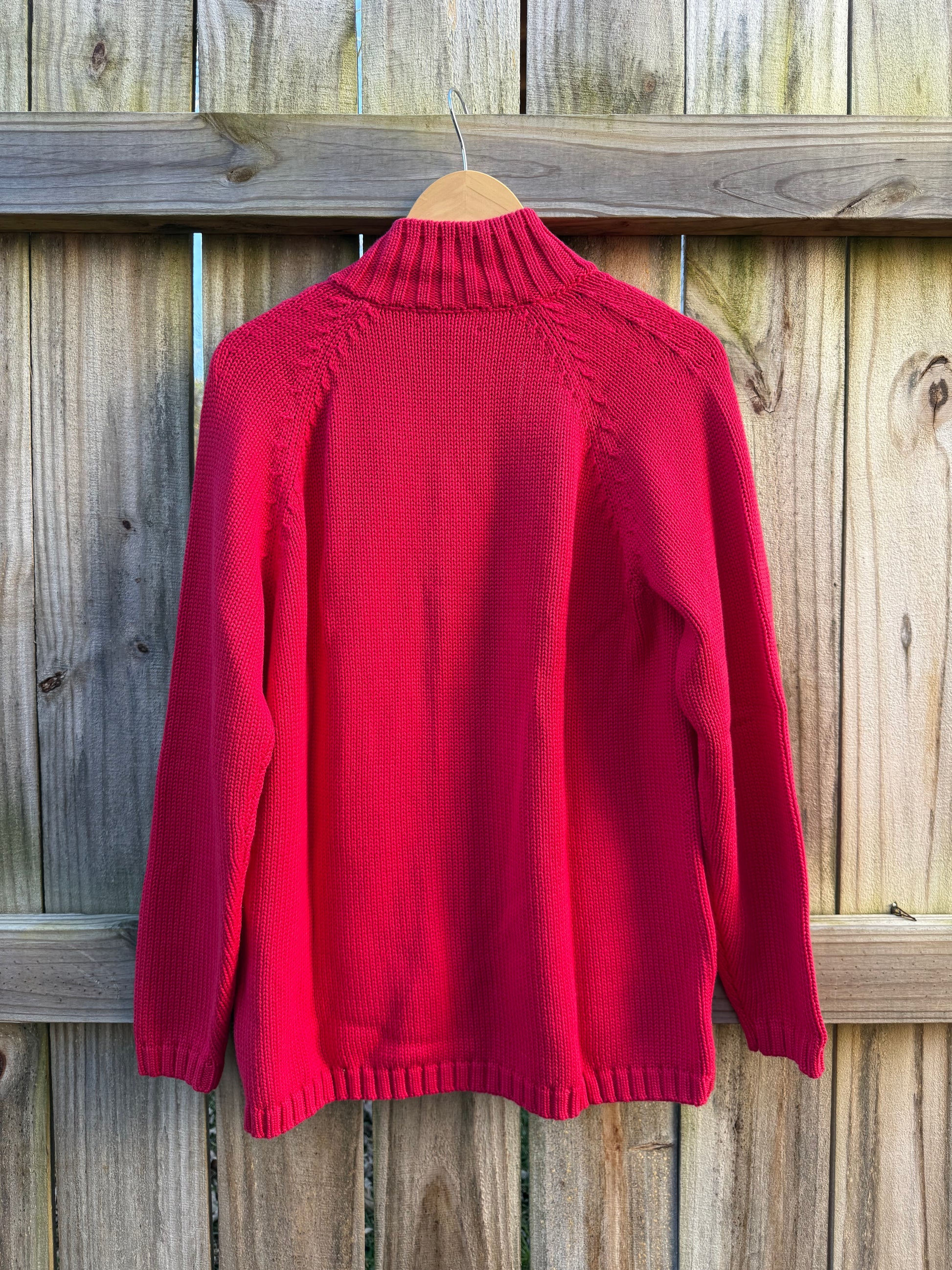 Lands’ End Red Full-Zip Ribbed Knit Jacket Cotton Holiday Sweater