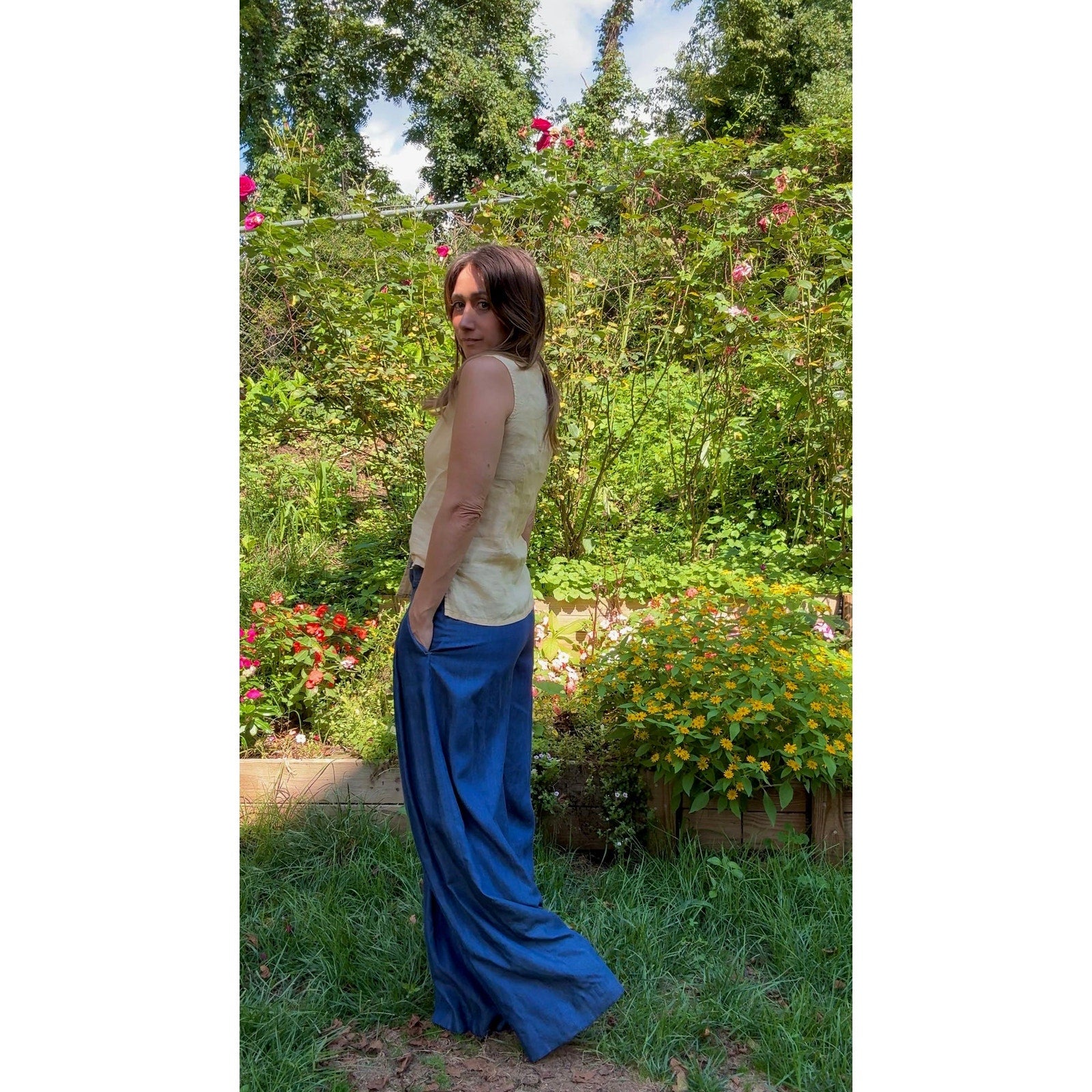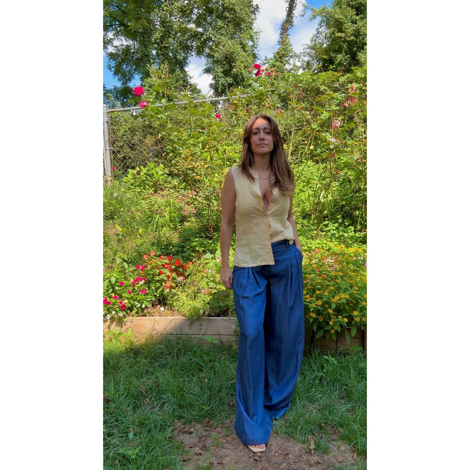 Lightweight and refined, this sleeveless button-front top in soft butter yellow is part of our Solstice Last Light collection. The delicate pin-tuck embroidery along the bodice gives it quiet texture and detail while the tailored shape keeps it versatile and elevated. Crafted in a breathable linen blend, it’s a piece that transitions seamlessly — wear it open over a slip dress, tucked into denim, or layered under a light cardigan as the season shifts.