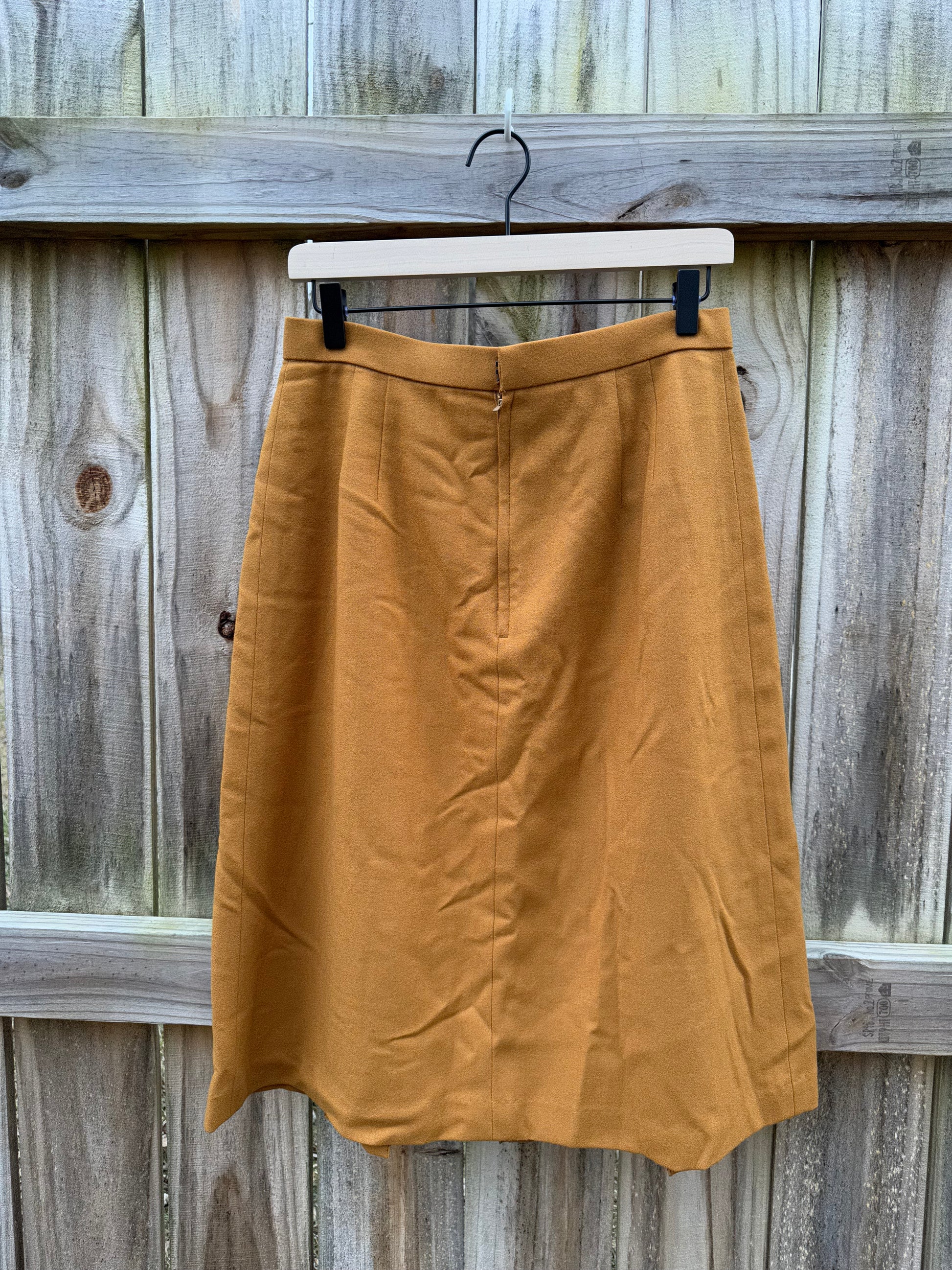 Mustard Pleated Midi Skirt | Tailored Front Pleat, Soft A-Line Shape
