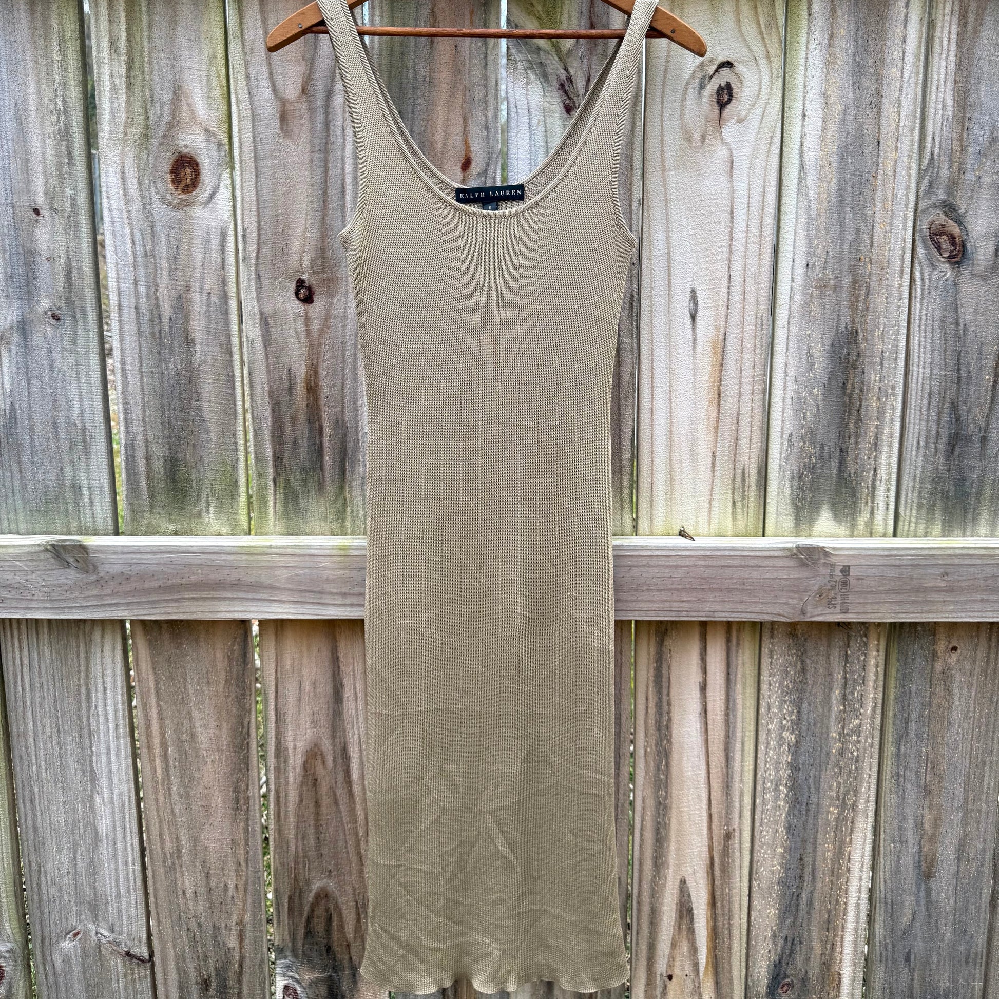 A true Black Label piece — Ralph Lauren’s former luxury line, originally priced in the four-figure range. It has that refined 90s minimalism designers keep sending down winter runways: a sculpting rib knit, a subtle metallic sheen, and a silhouette that does all the work without any extra styling.