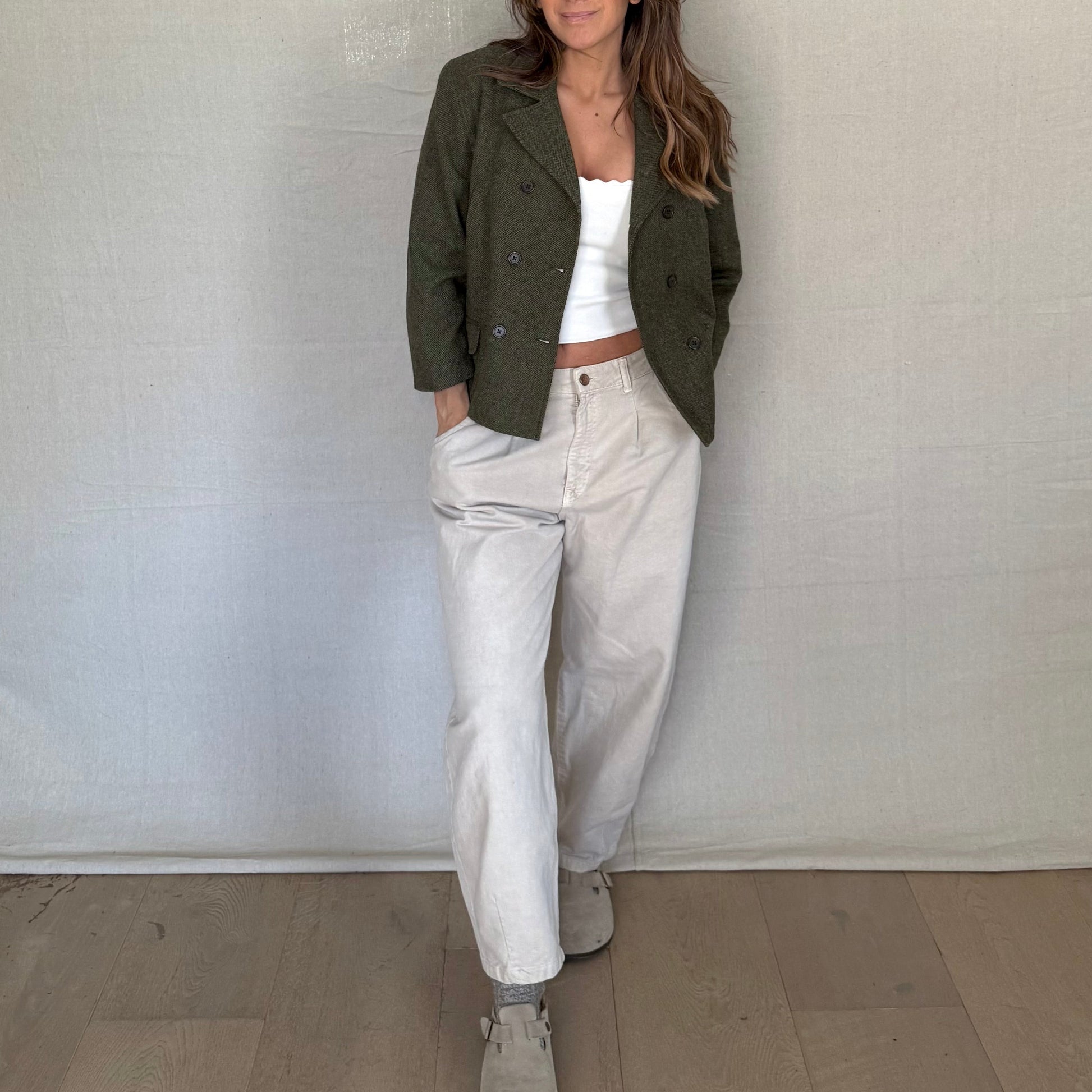 Styling notes: Perfect with white denim, slouchy trousers, or layered over a simple tank or knit. Reads polished, effortless, and grown — the kind of blazer that makes everything else look intentional.