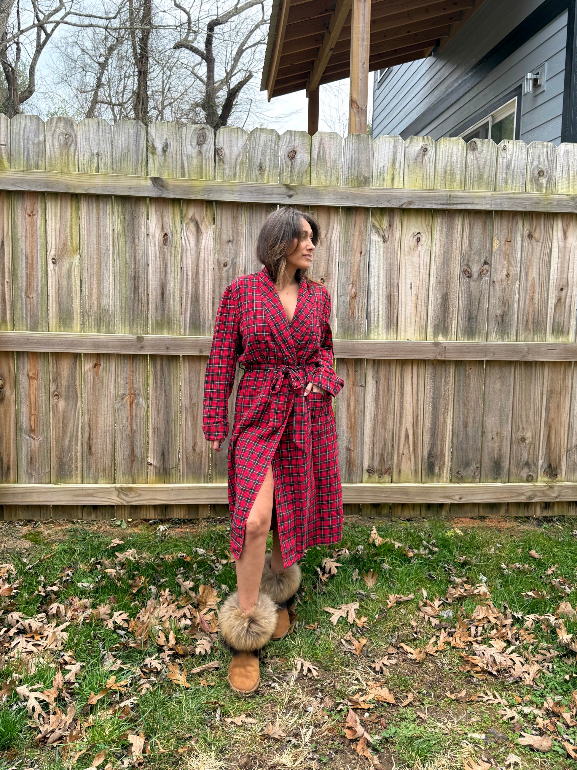 RED PLAID TARTAN COTTON ROBE — VINTAGE