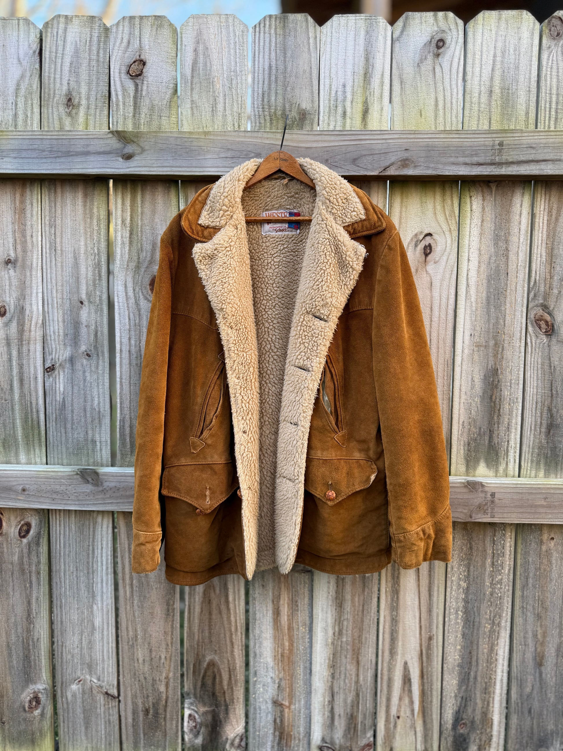 Schott western suede shearling coat jacket made in USA caramel brown vintage