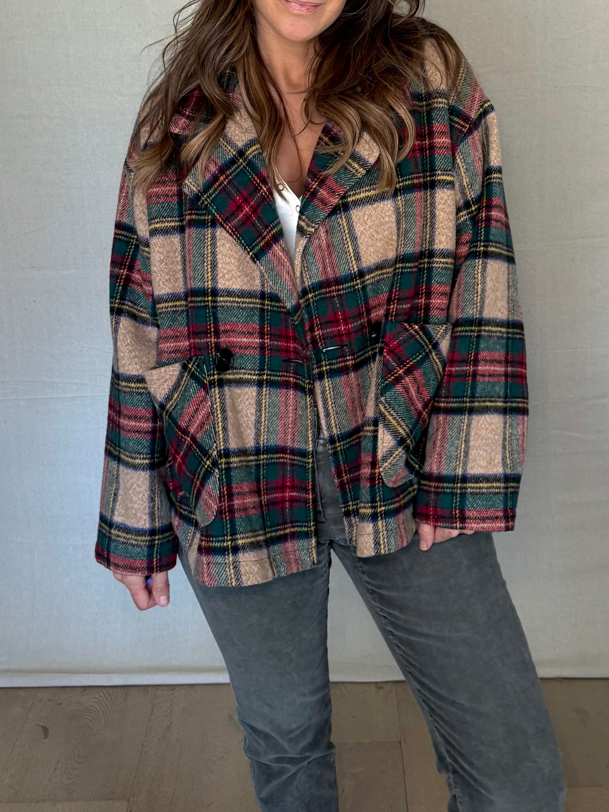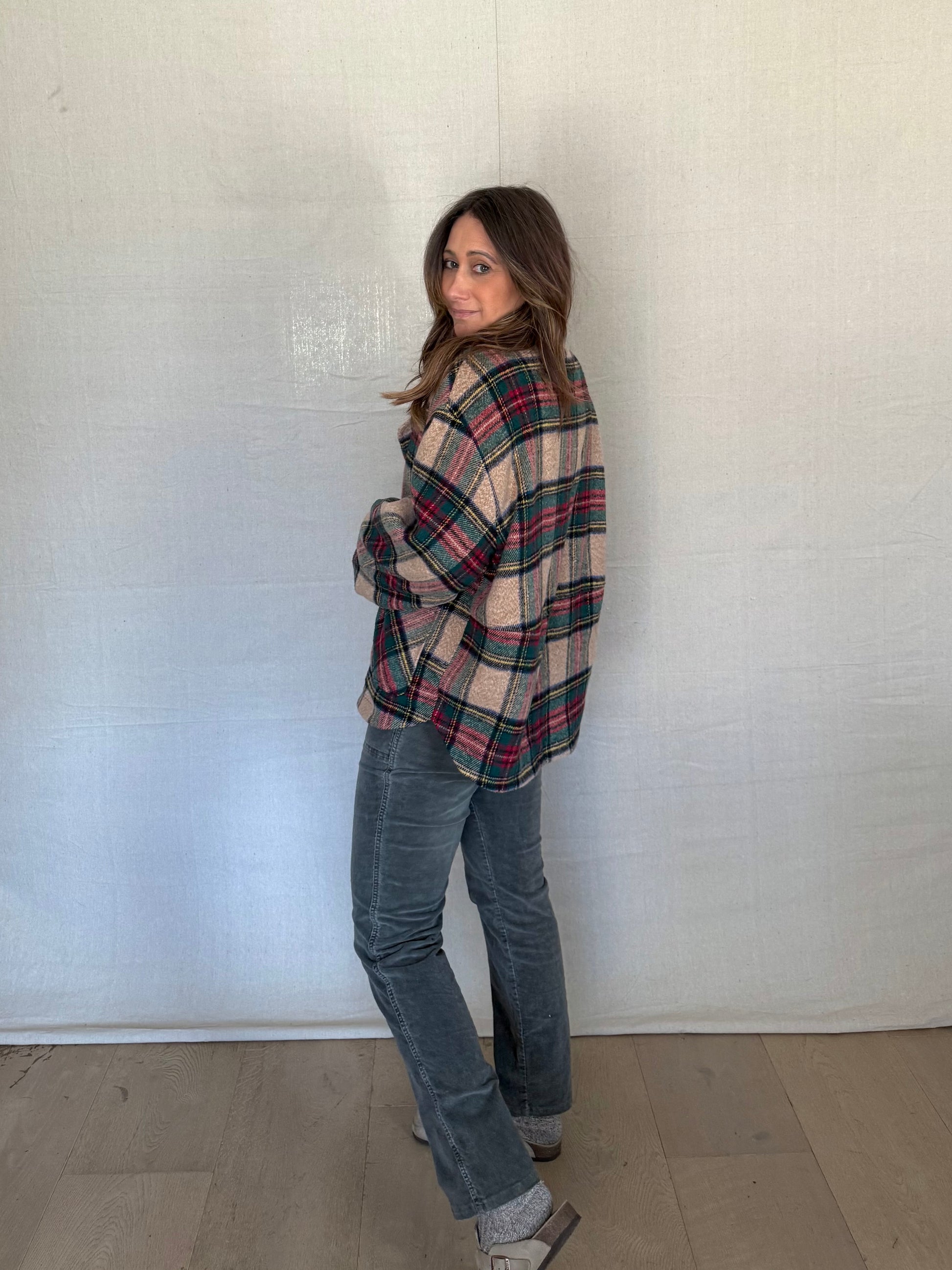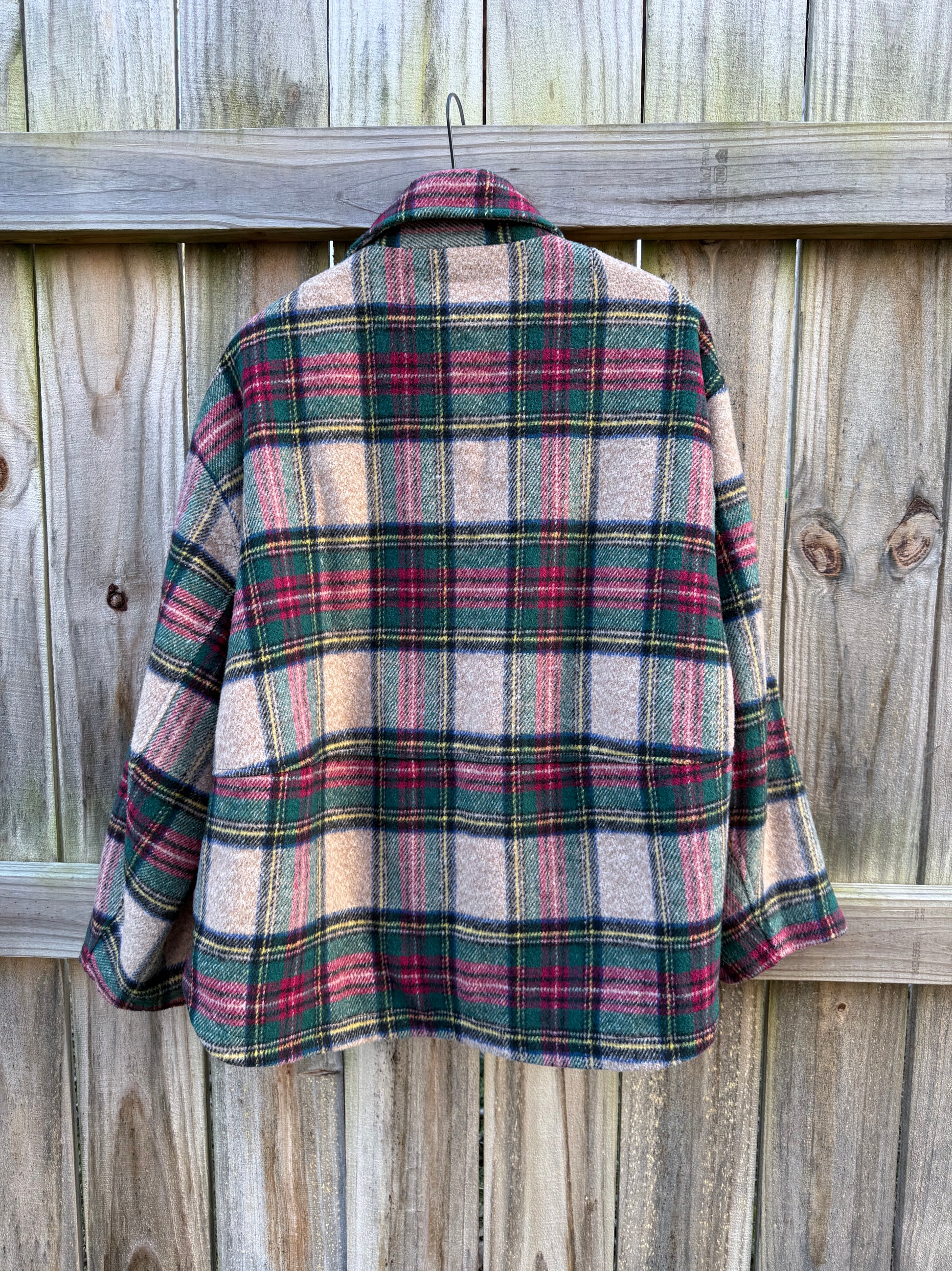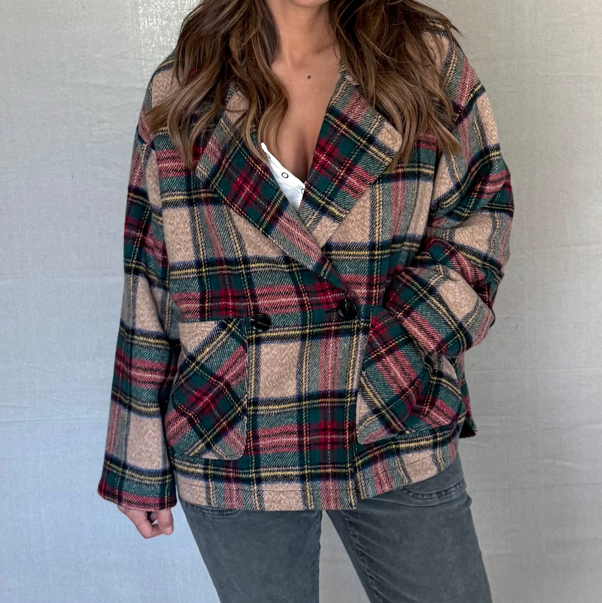 Soft plaid in warm tones with a simple button front and comfortable shape. Not complicated, not precious — just an easy layer you’ll keep grabbing because it looks good and feels good.
