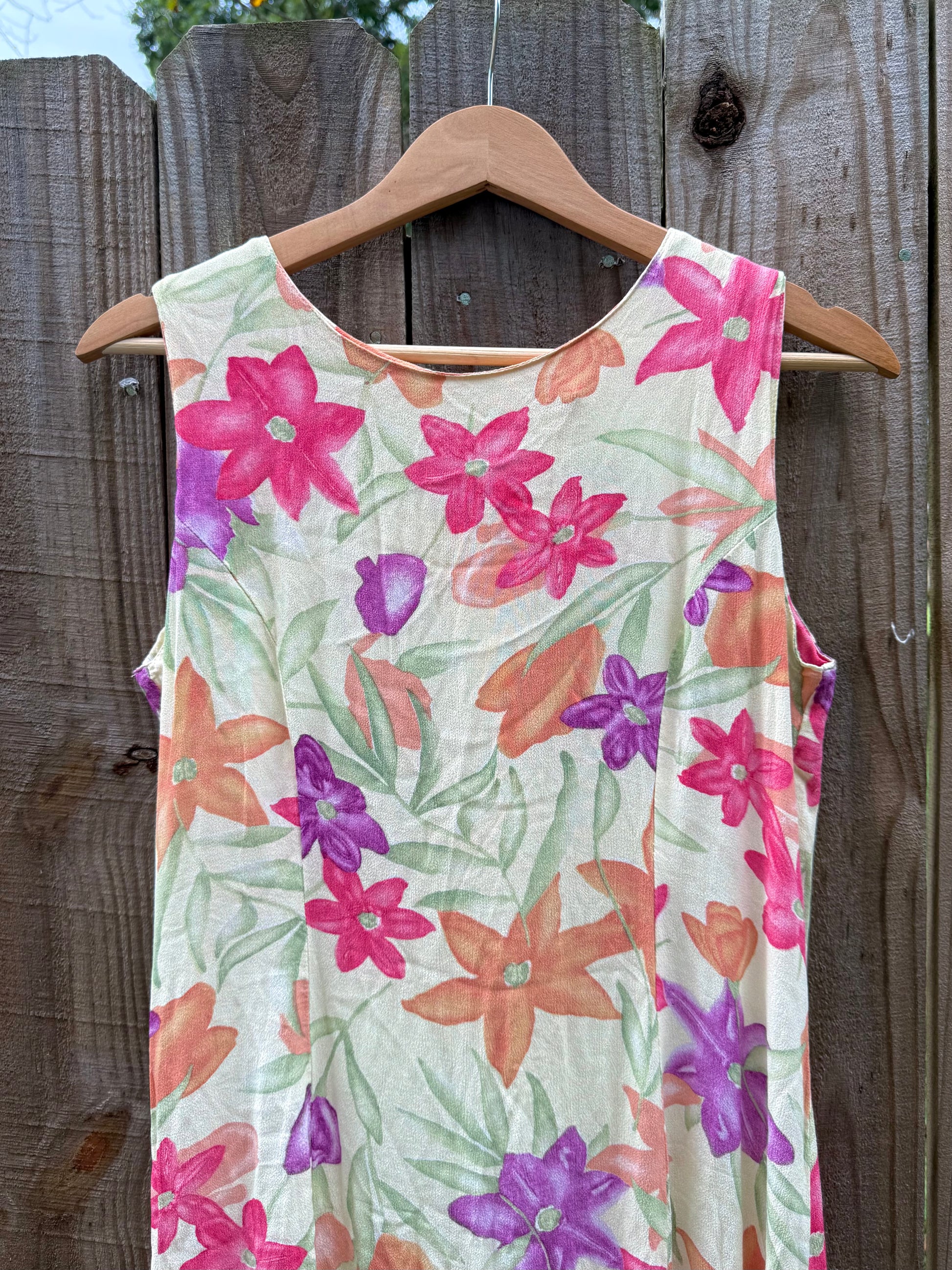 Vintage 90s Floral Column Maxi Dress, Pastel Print - Romantic Grunge