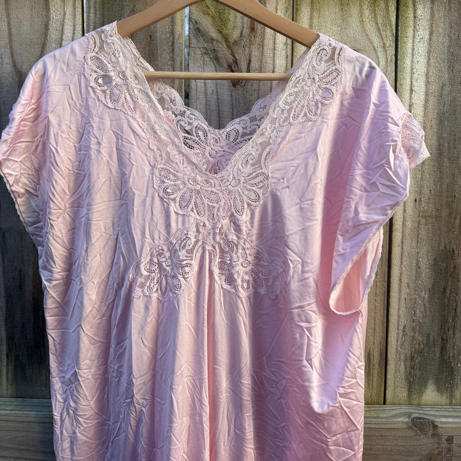 (vintage nightgown, sheer lingerie, lace trim, blush pink sleepwear, Valentine's Day, LoveShackFancy, Morgan Lane, For Love & Lemons)
