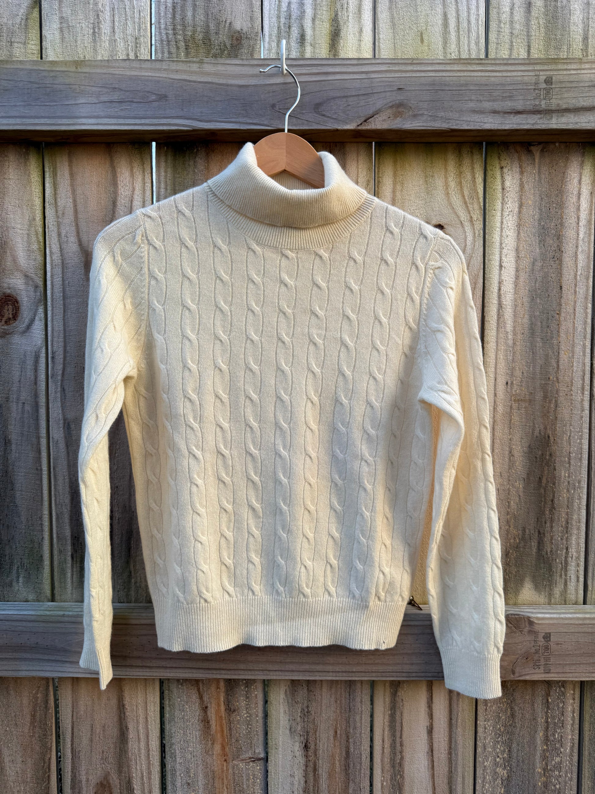 Vintage Classic Cableknit Cream Cashmere Sweater Small