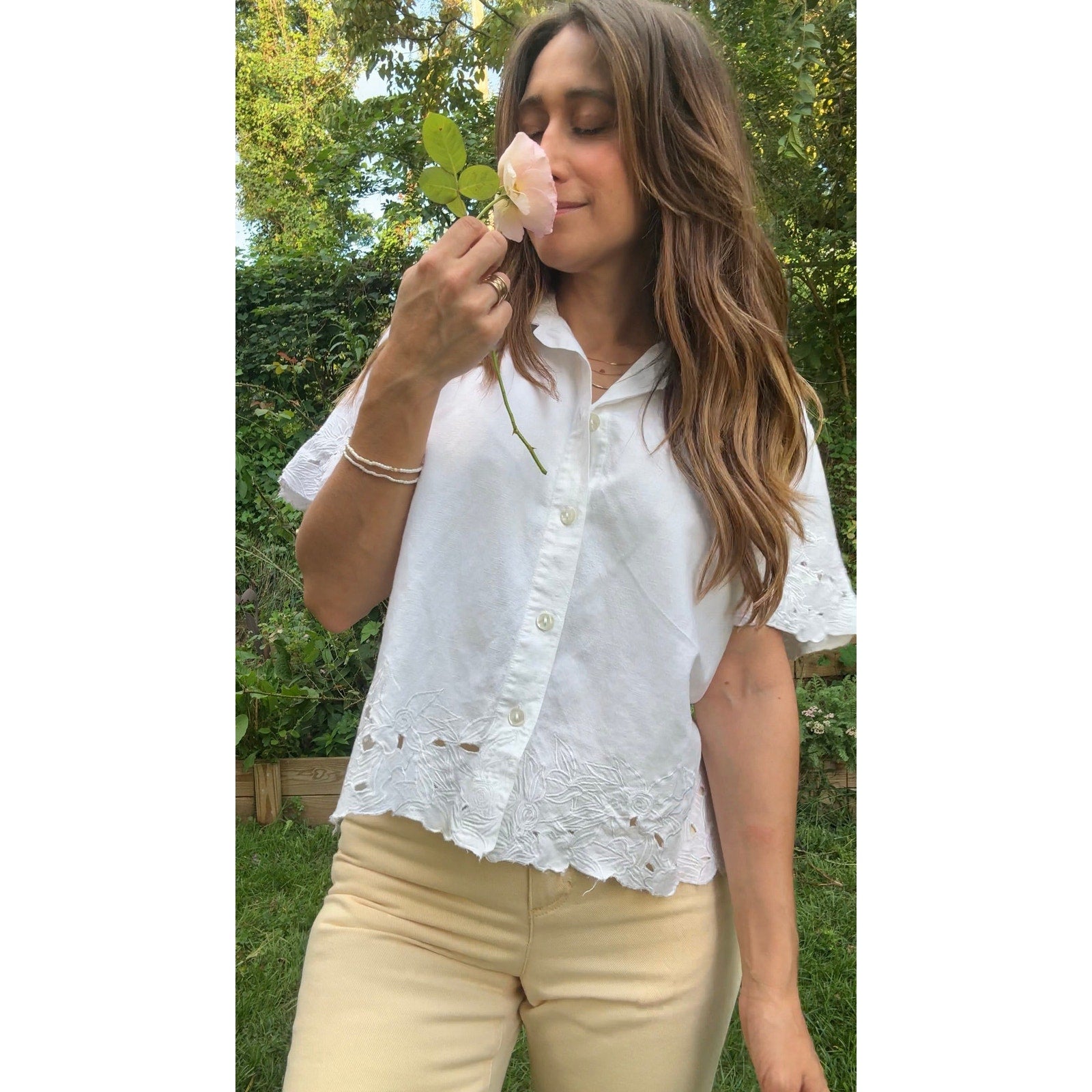 VINTAGE EMBROIDERED BUTTON-DOWN BLOUSE — WHITE
