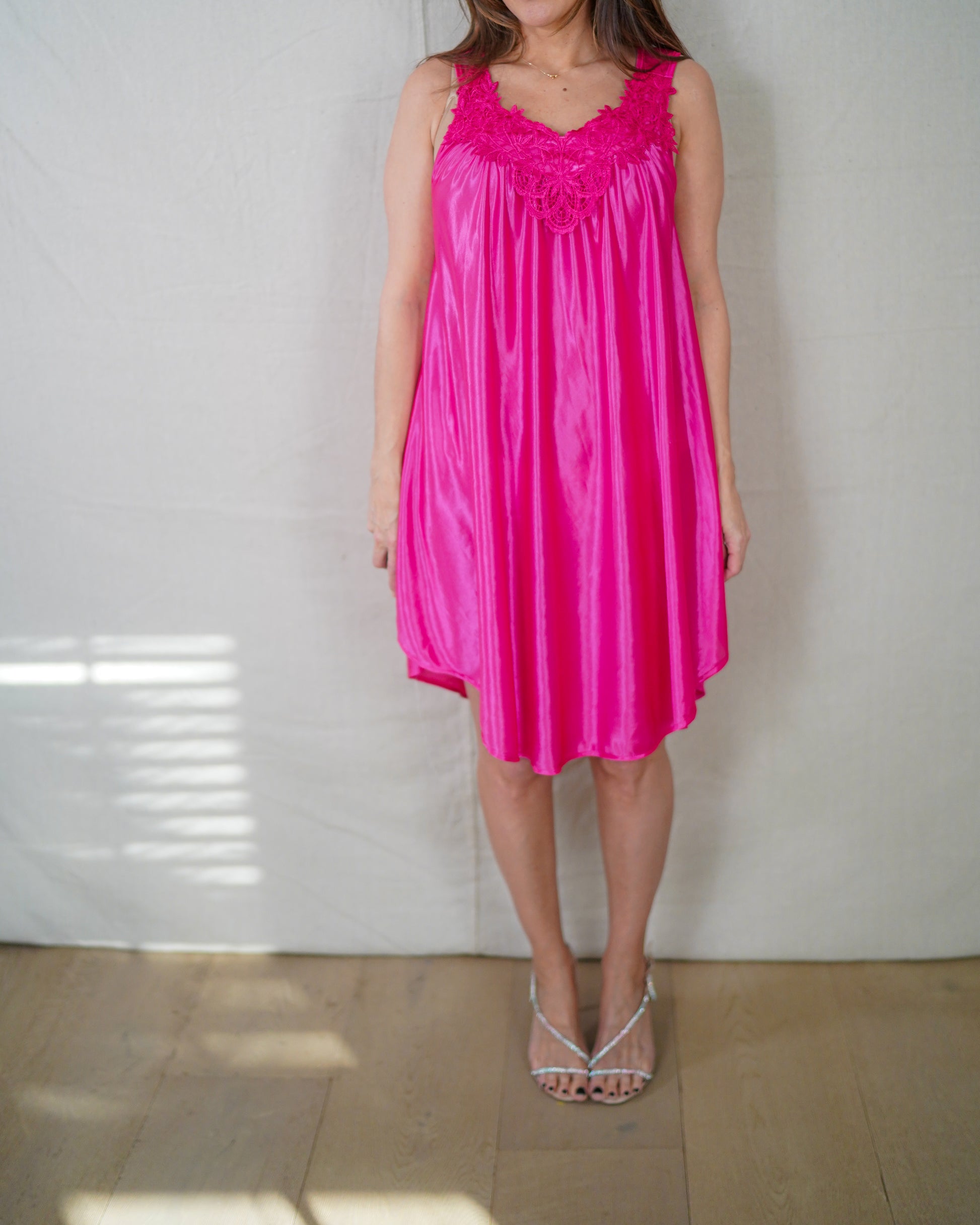 Vintage Hot Pink Lace Nightie Dress