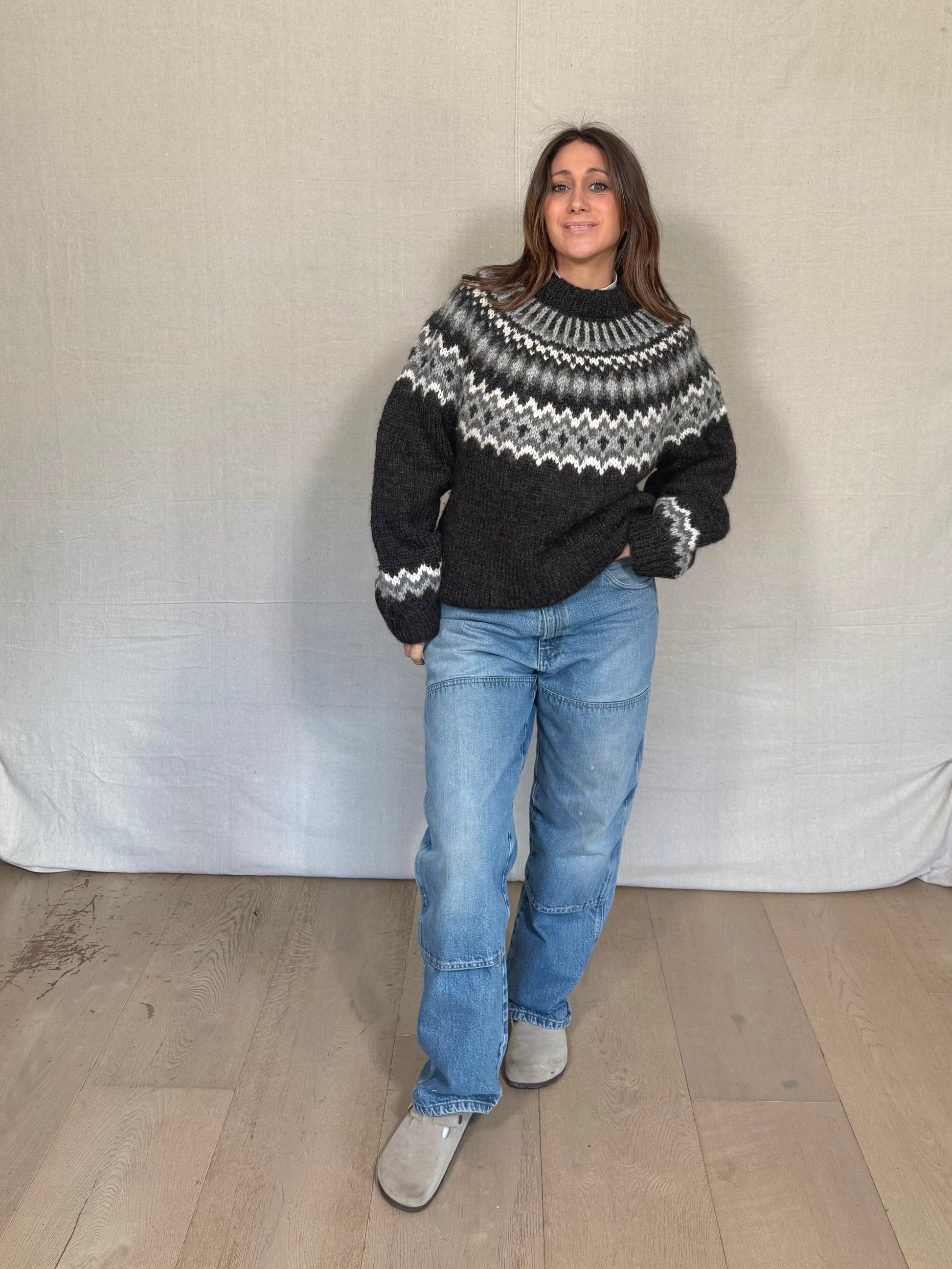 A true cold-weather heirloom. Hand-knit in Iceland from pure wool, with a classic Nordic yoke pattern and that dense, slightly sculptural knit that only comes from traditional methods. Warm without feeling bulky. Softly structured but relaxed.