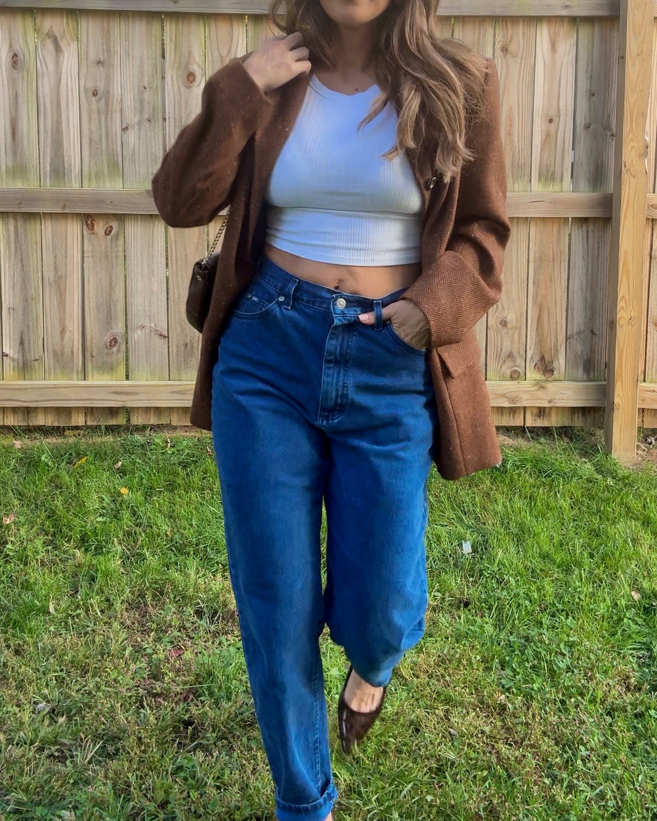 Styling note: espresso jeans, ballet flats, undone hair. Or lingerie, gold hoops, and a late-night walk home. This is not a “blazer outfit” — it’s a mood.