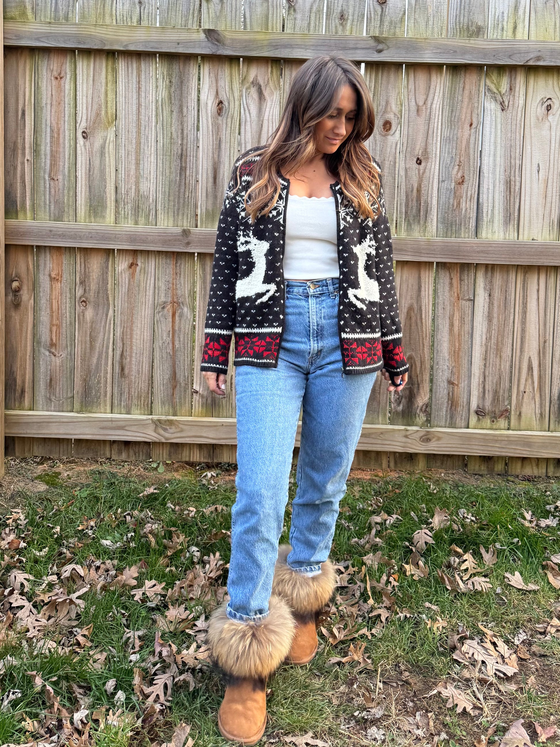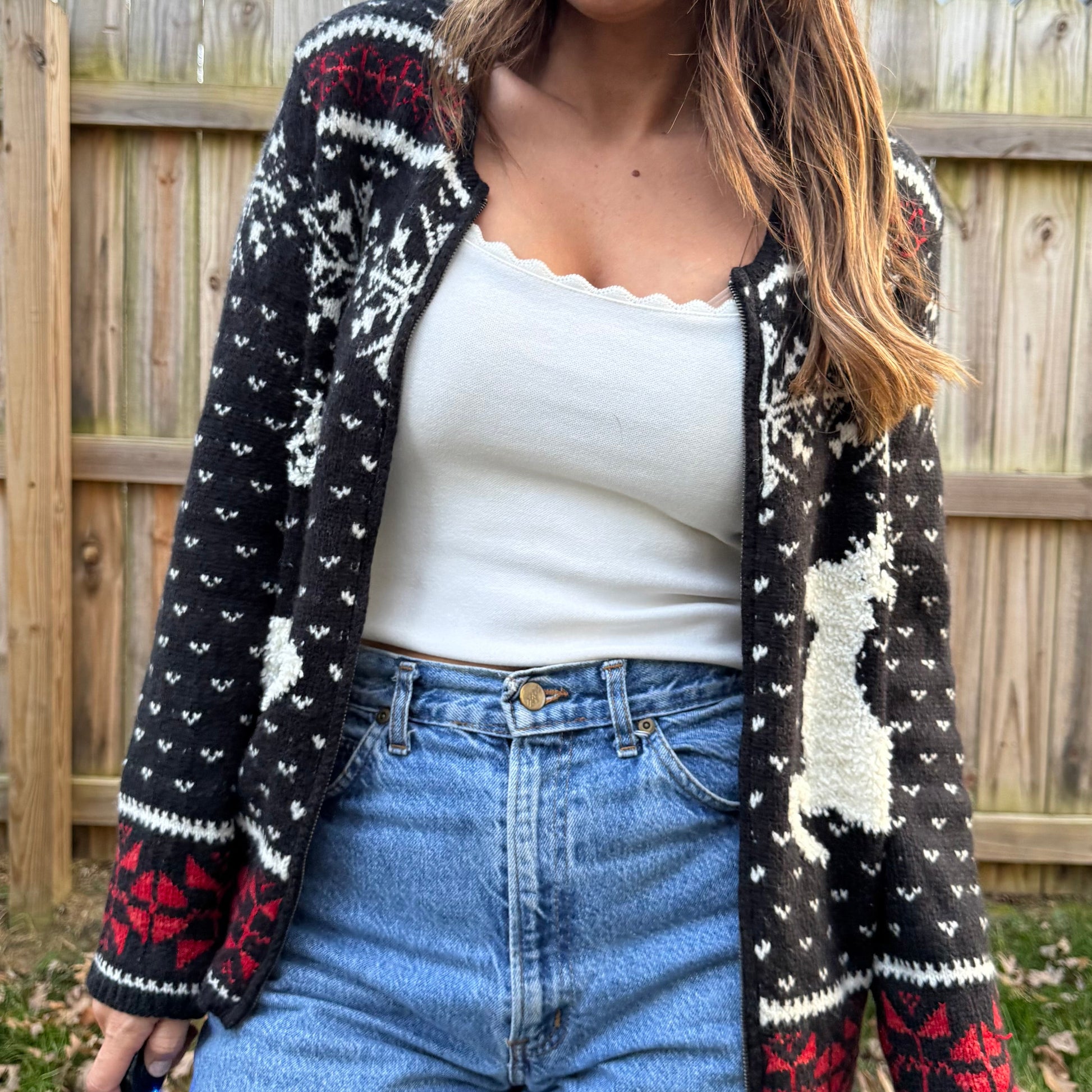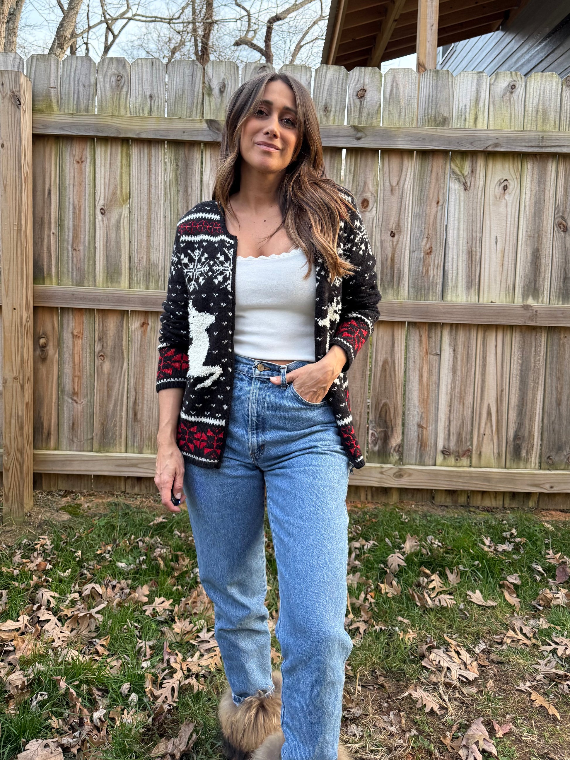 Vintage J.Jill Alpine Reindeer Cardigan Christmas Holiday Sweater