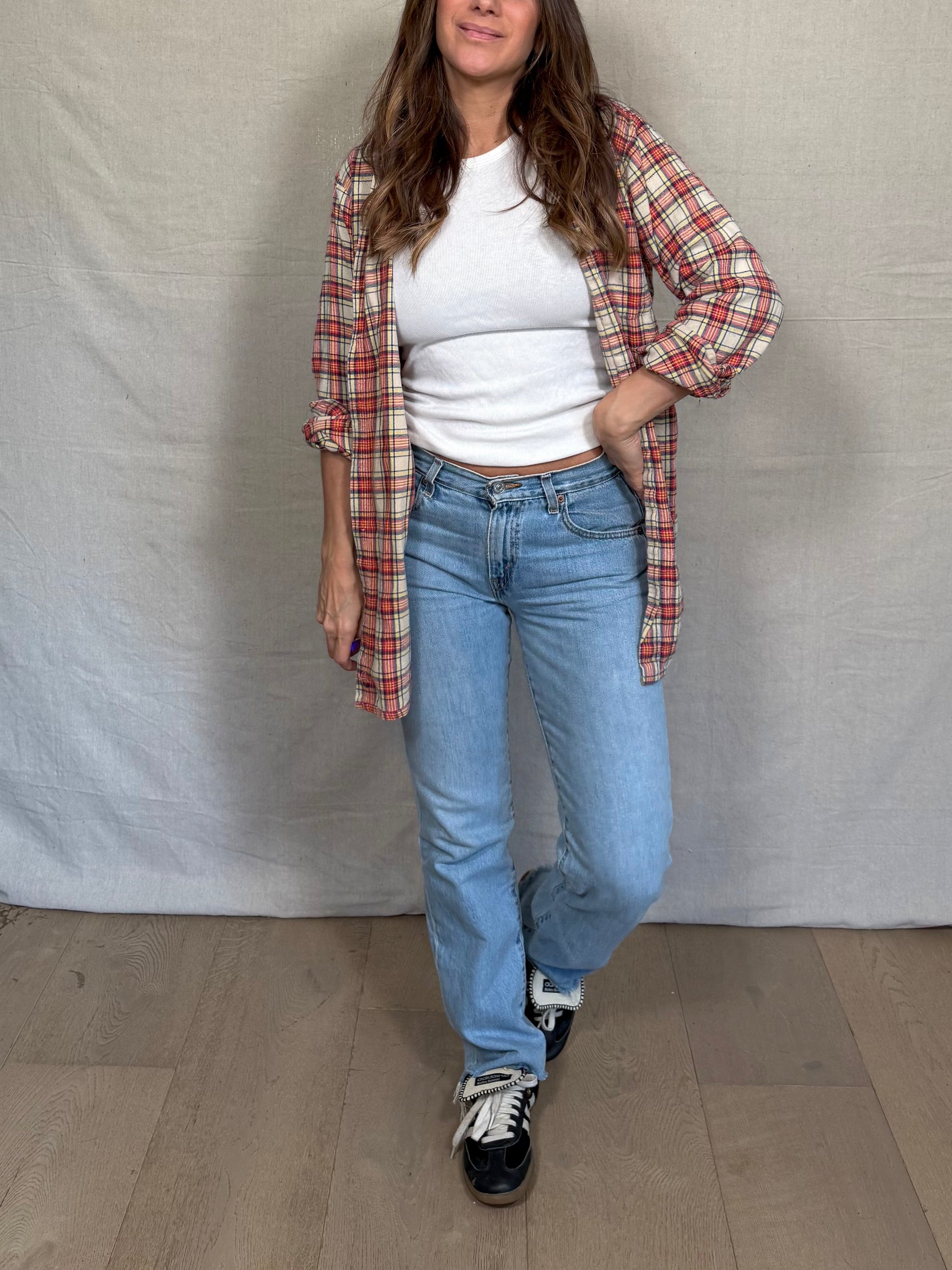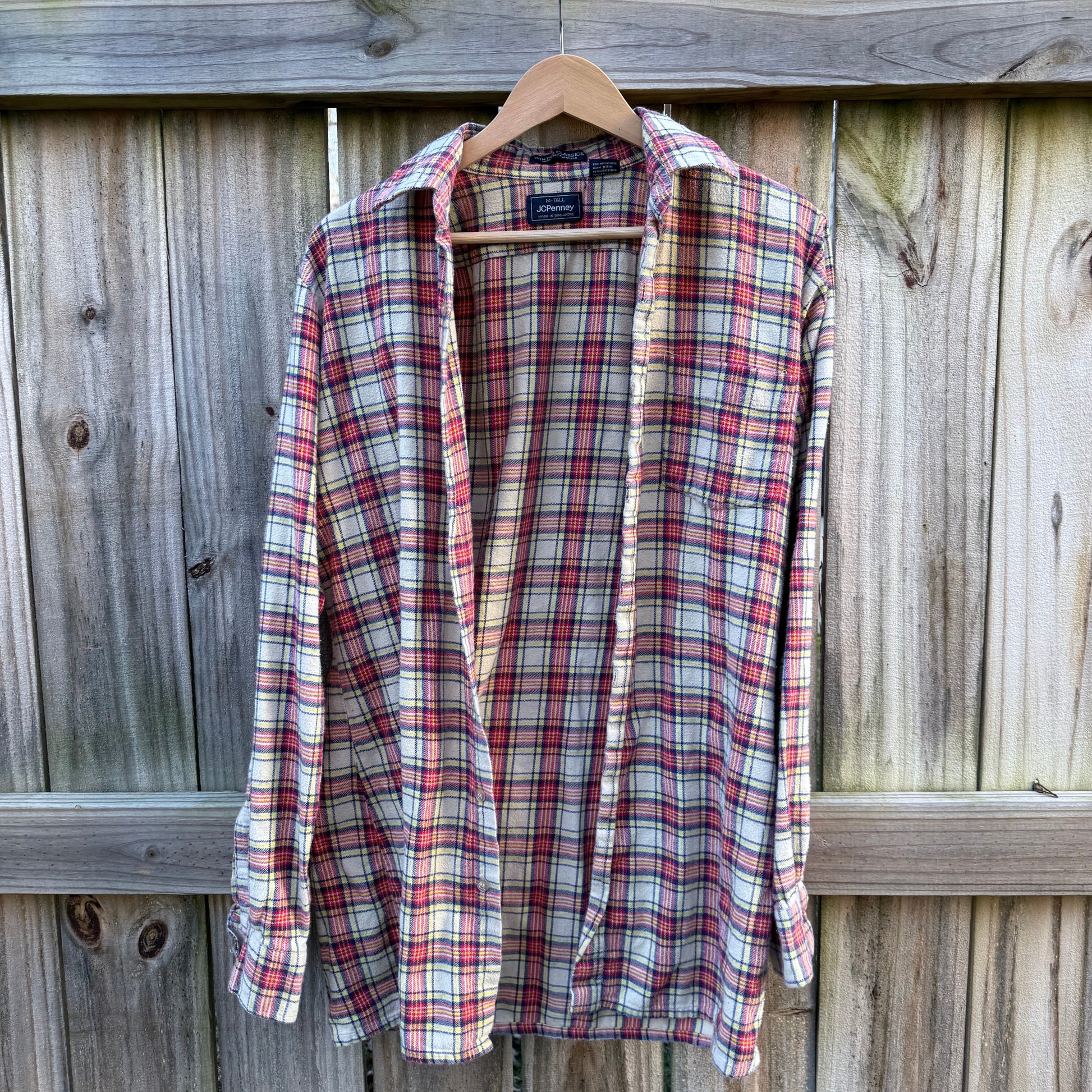A classic flannel that reads current because of how it fits and wears. Soft cotton with that broken-in feel you only get from vintage, in a warm yellow, red, and cream plaid.