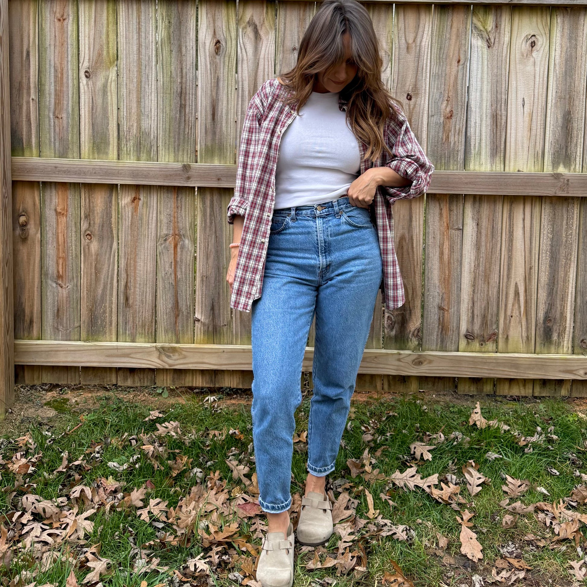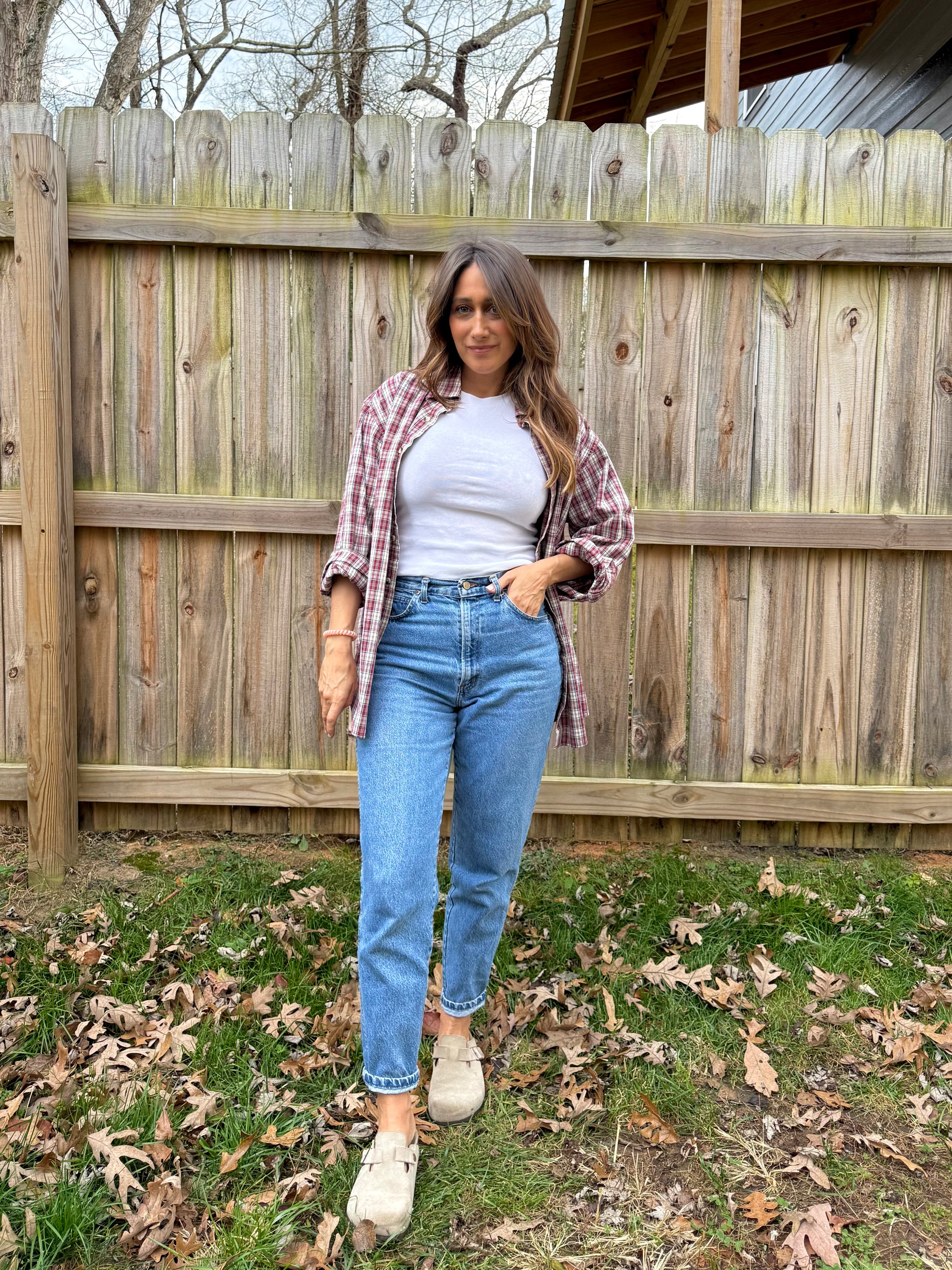 Open over a white ribbed tank, straight denim, and Birkenstock Bostons for a clean, editorial everyday look.