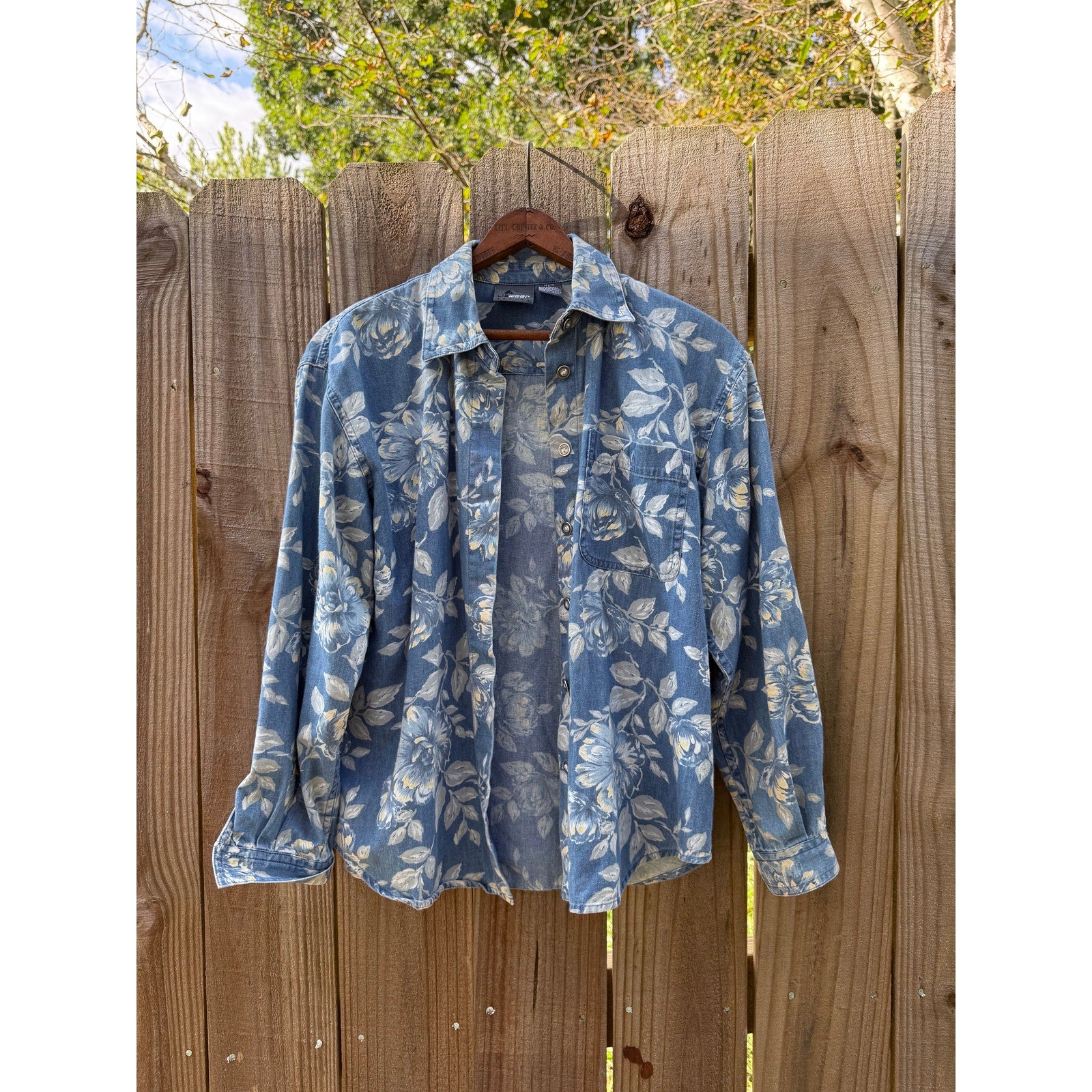 Vintage Lizwear Chambray Floral Shirt – 90s Western Denim