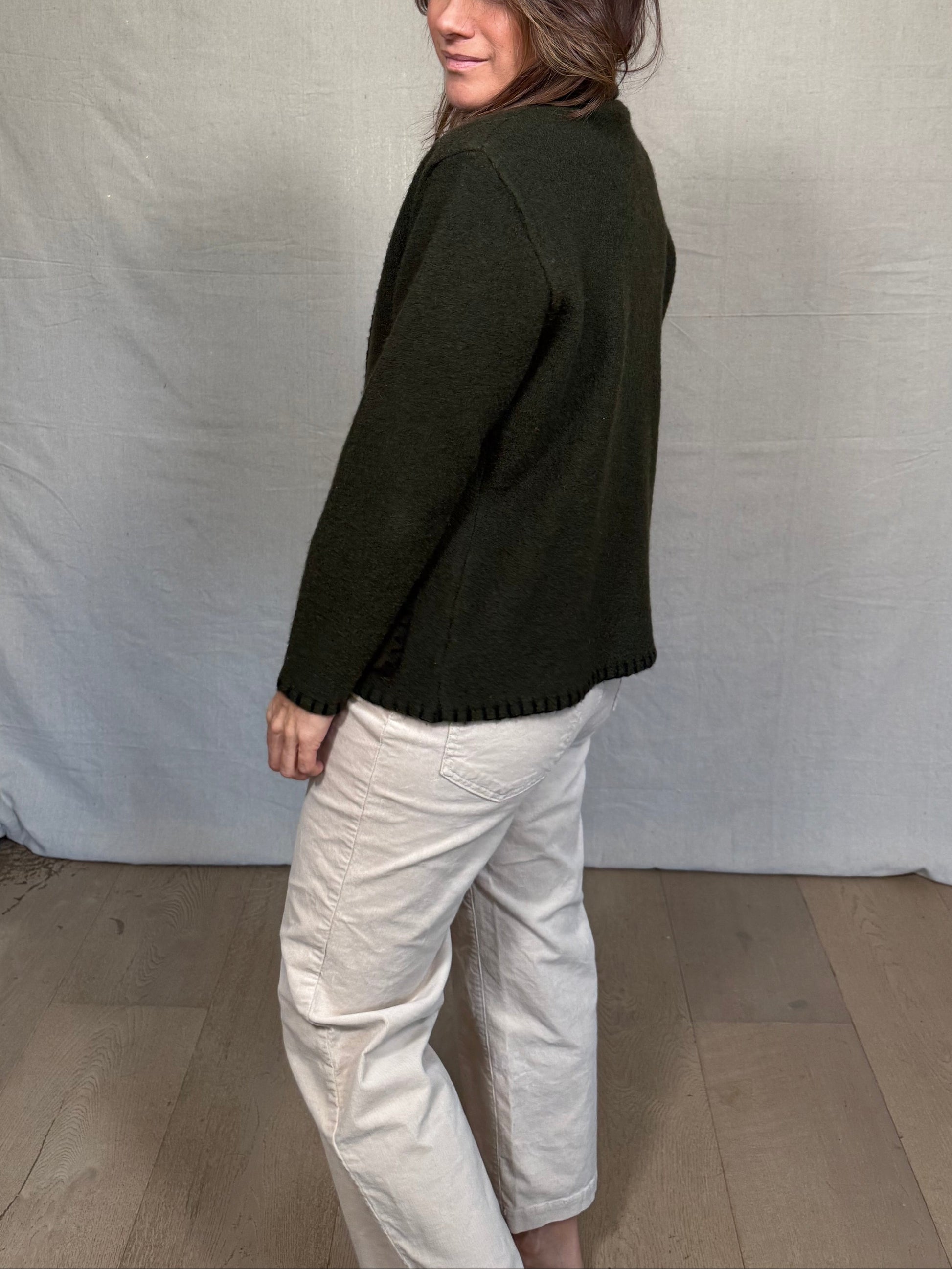 100% wool with a soft, felted hand. Substantial but wearable. Feels intentional without feeling precious.
