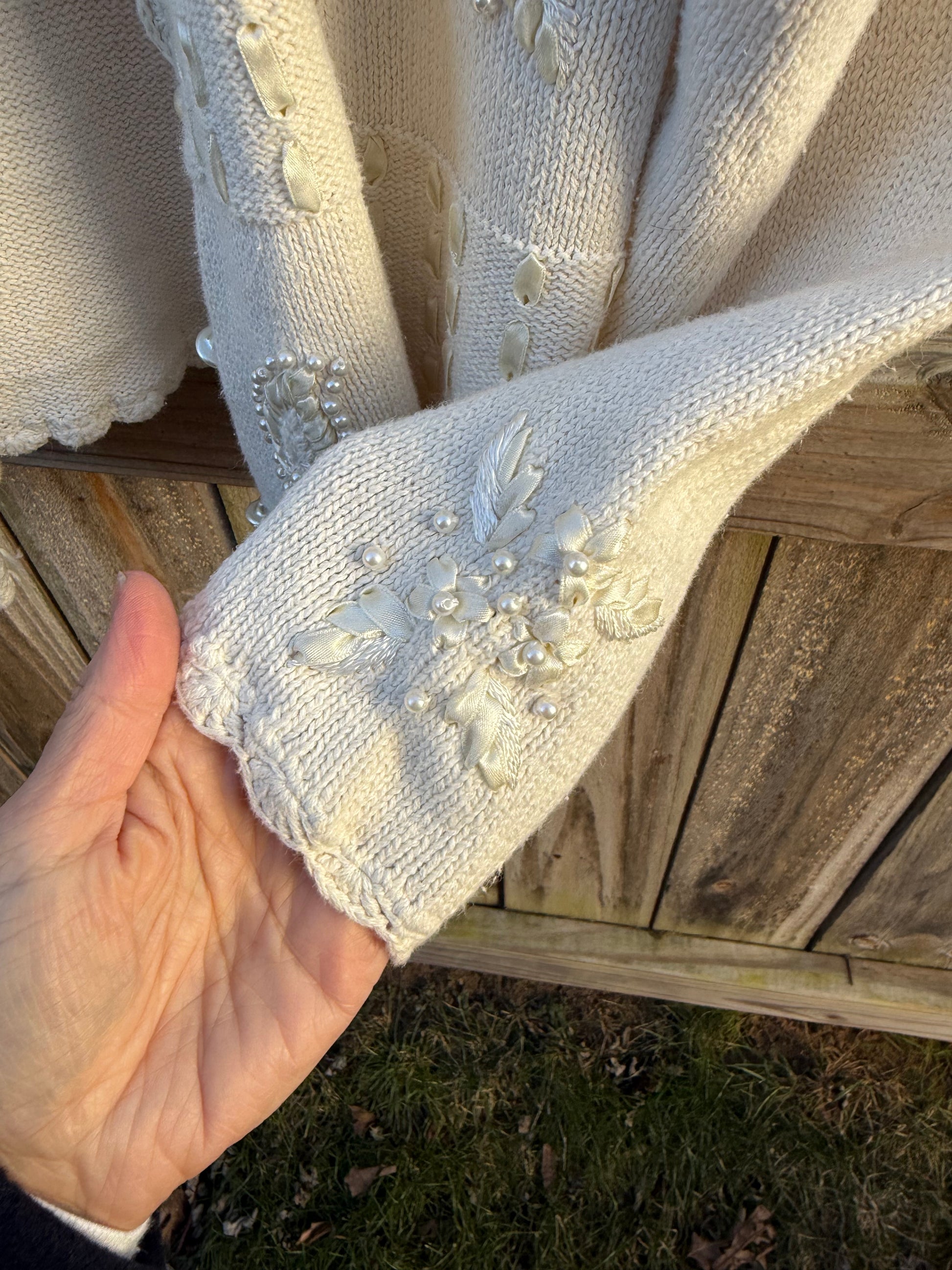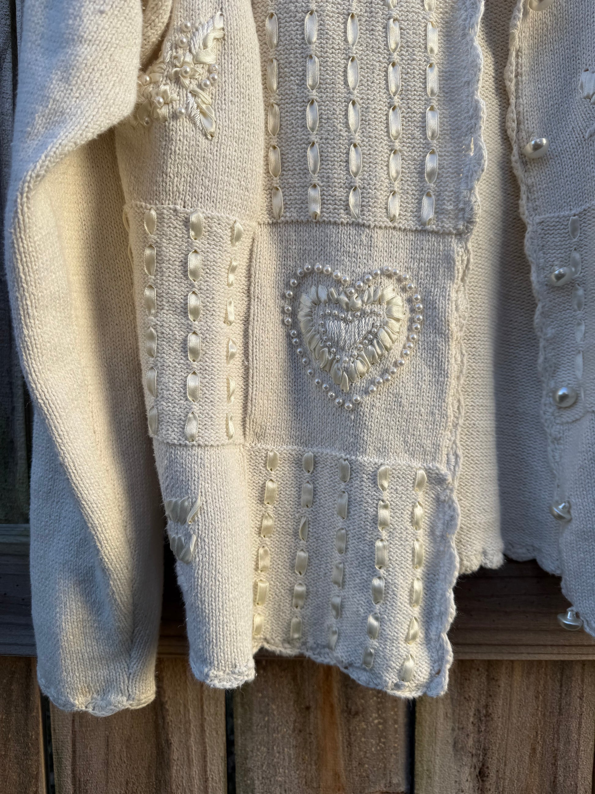 Vintage Pearl Heart Patchwork Cardigan - Valentine