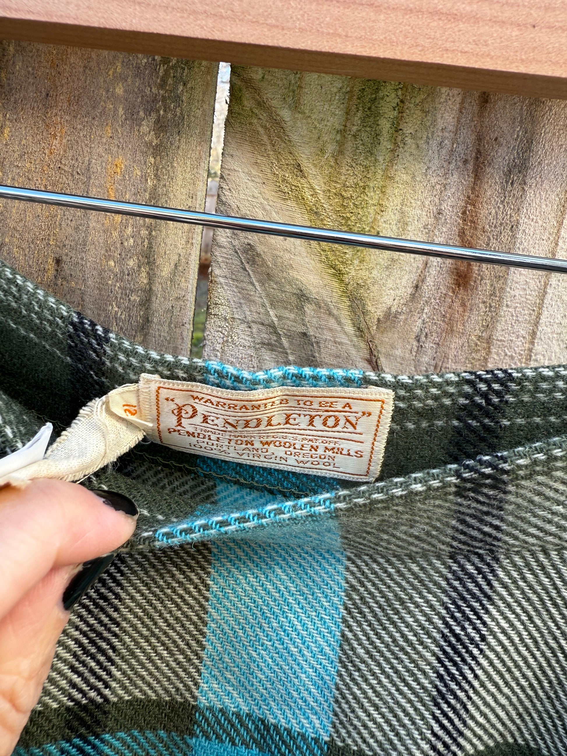 Vintage Pendleton Plaid Wool Circle Skirt – Teal Green Tartan Midi