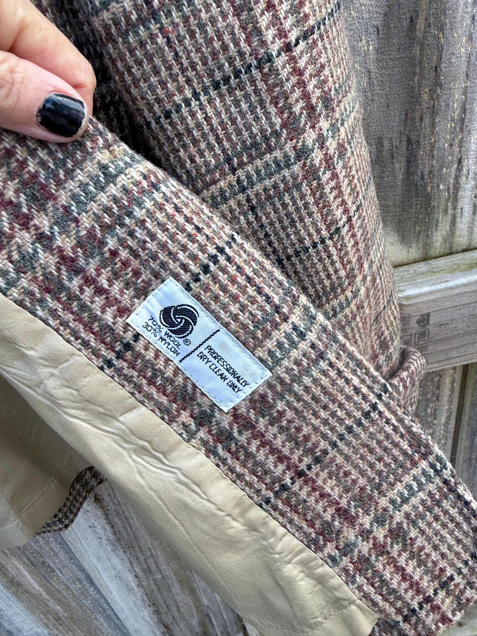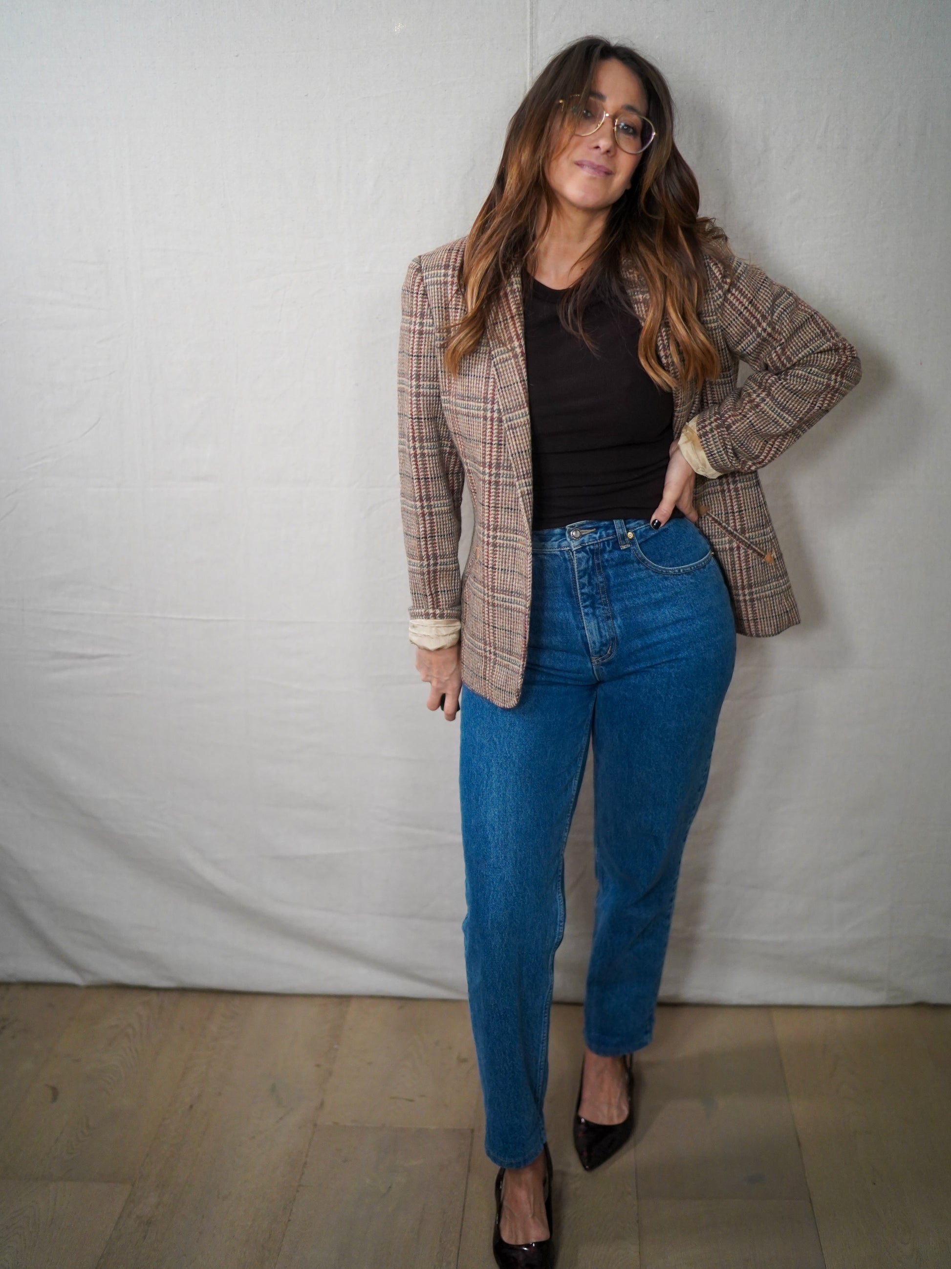 (Céline, APC, Sézane, vintage wool blazer, plaid blazer women, Parisian style blazer, tailored vintage jacket, French girl blazer, brown plaid blazer, editor style blazer)