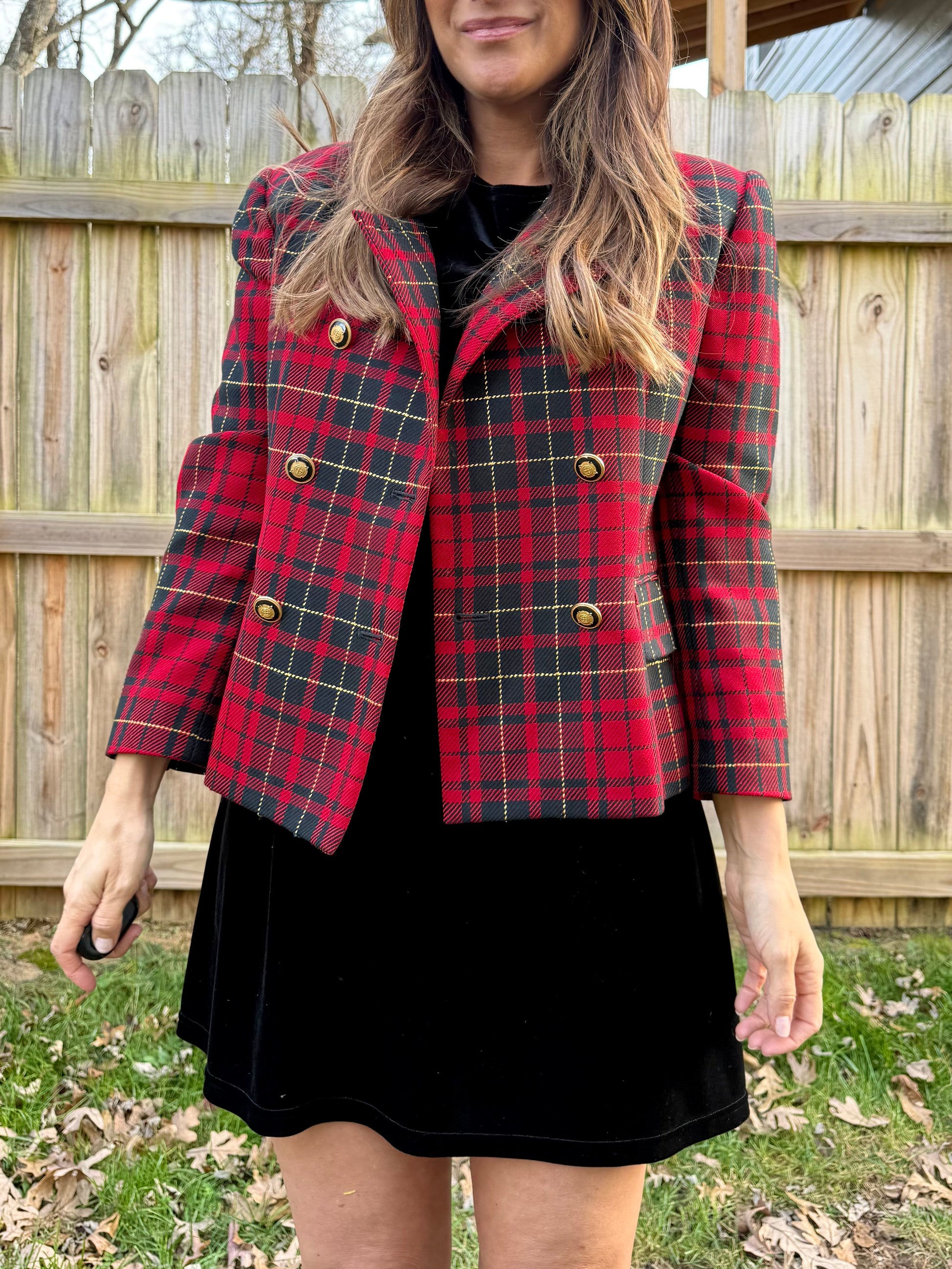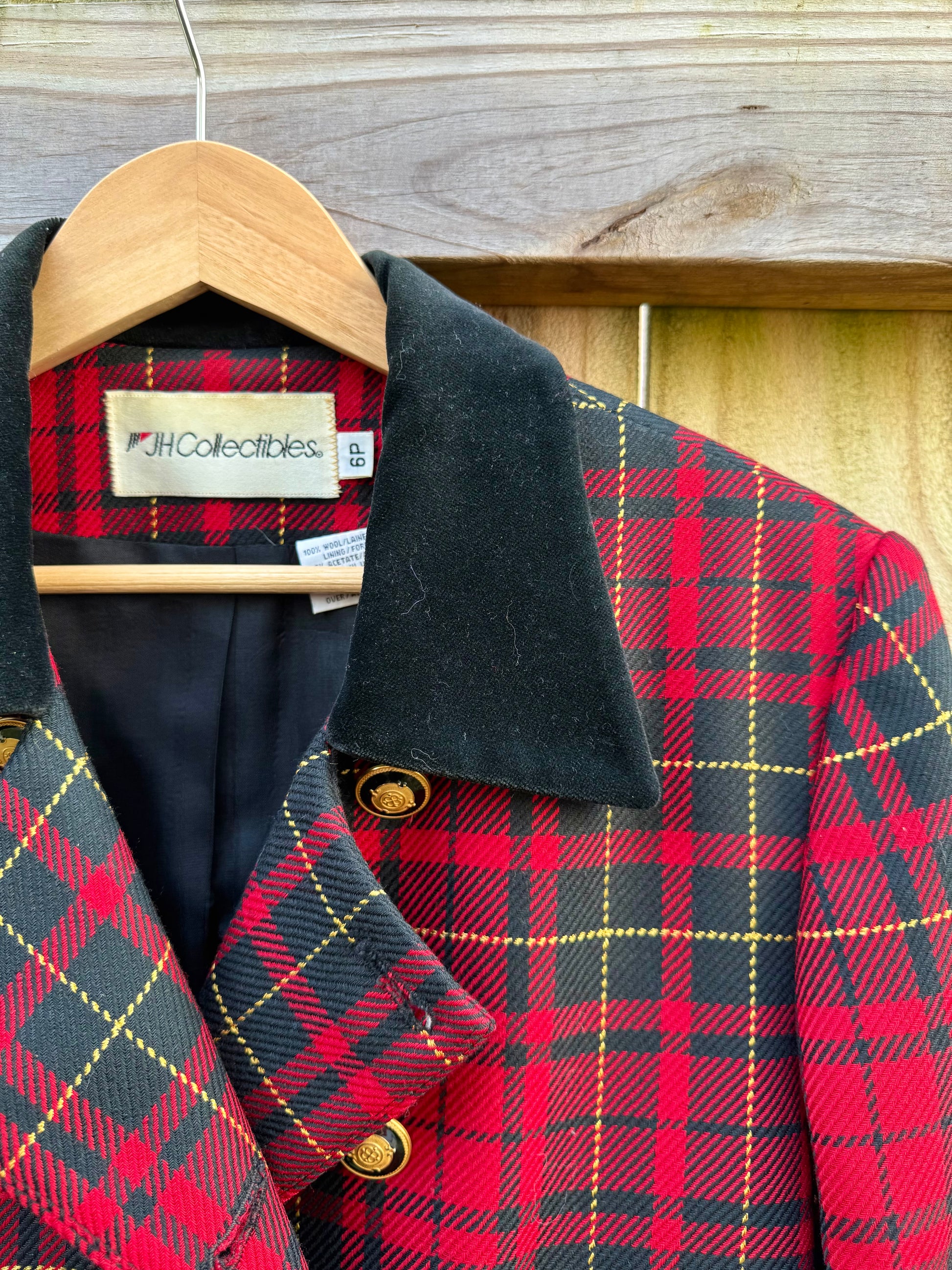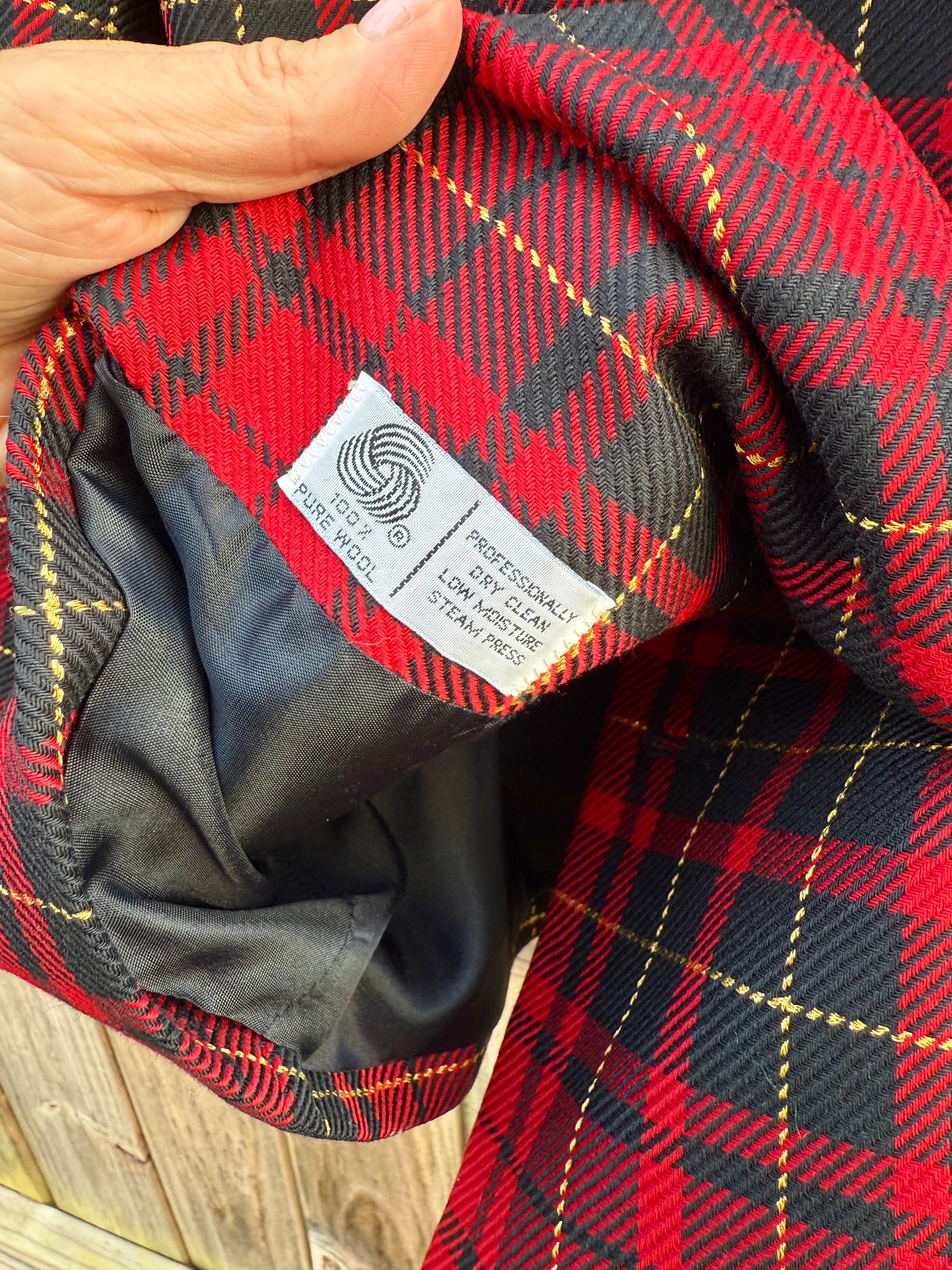 Vintage Red Tartan Wool Blazer (Made in USA) J H Collectibles
