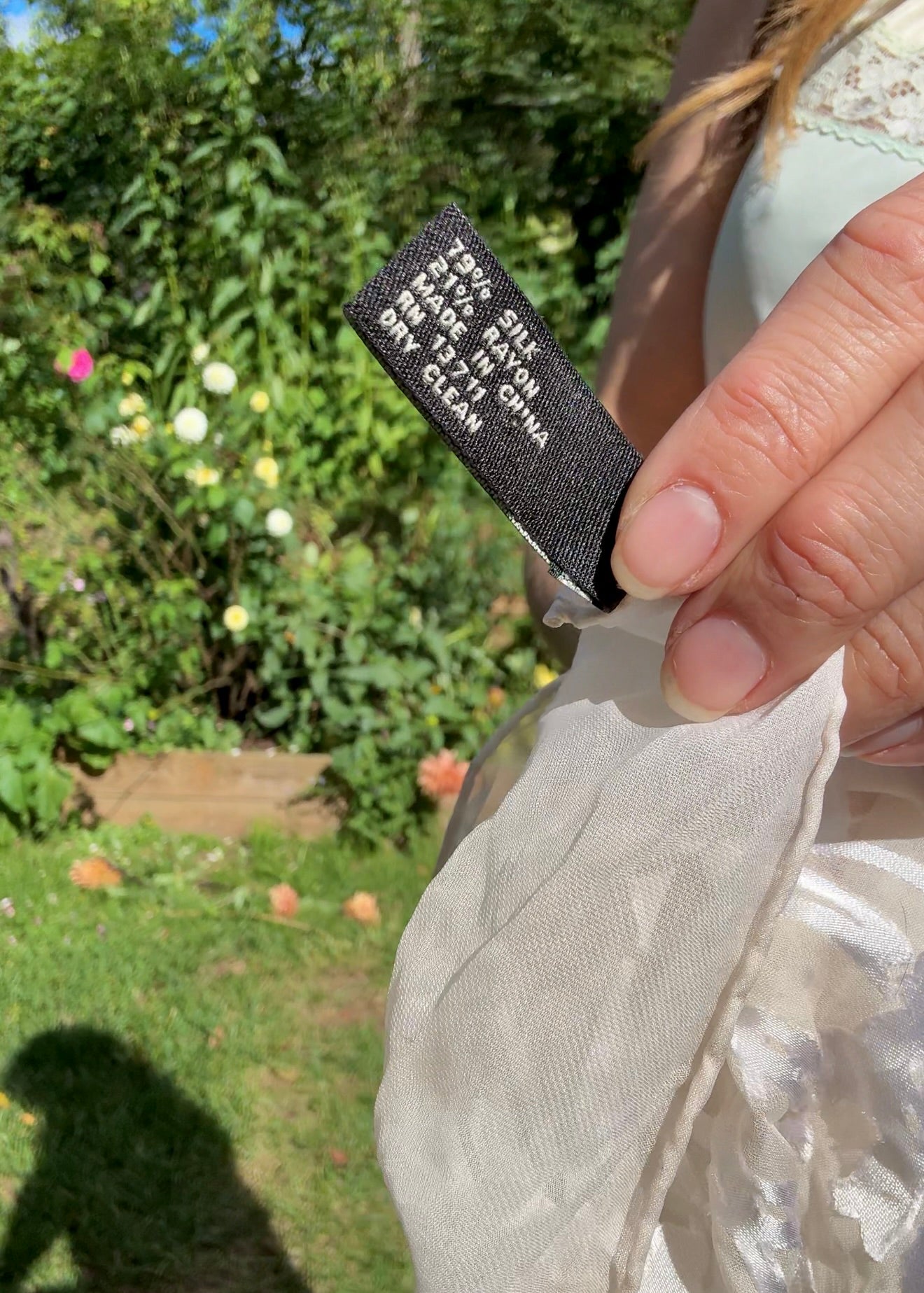 Styling notes: Tie it over your hair like a Juliet veil with slip dresses and wooden platforms for a 70s goddess mood. Wrap it loose over the shoulders with minimal gold jewelry for quiet luxury energy, or fold it into a skinny headscarf with oversized sunnies for that off-duty model look.