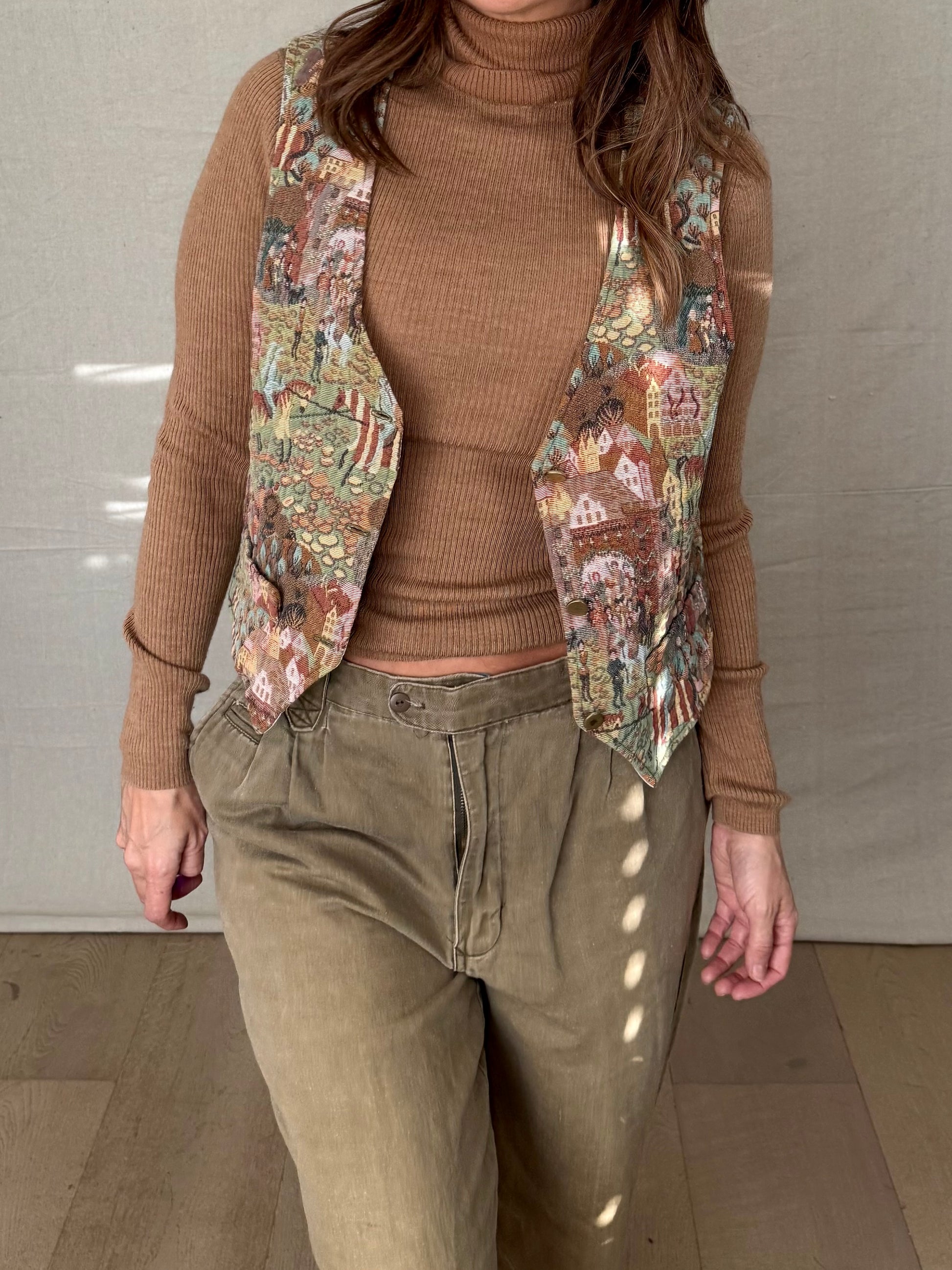 Vintage Tapestry Vest – Fitted 90s Cool Girl Layer